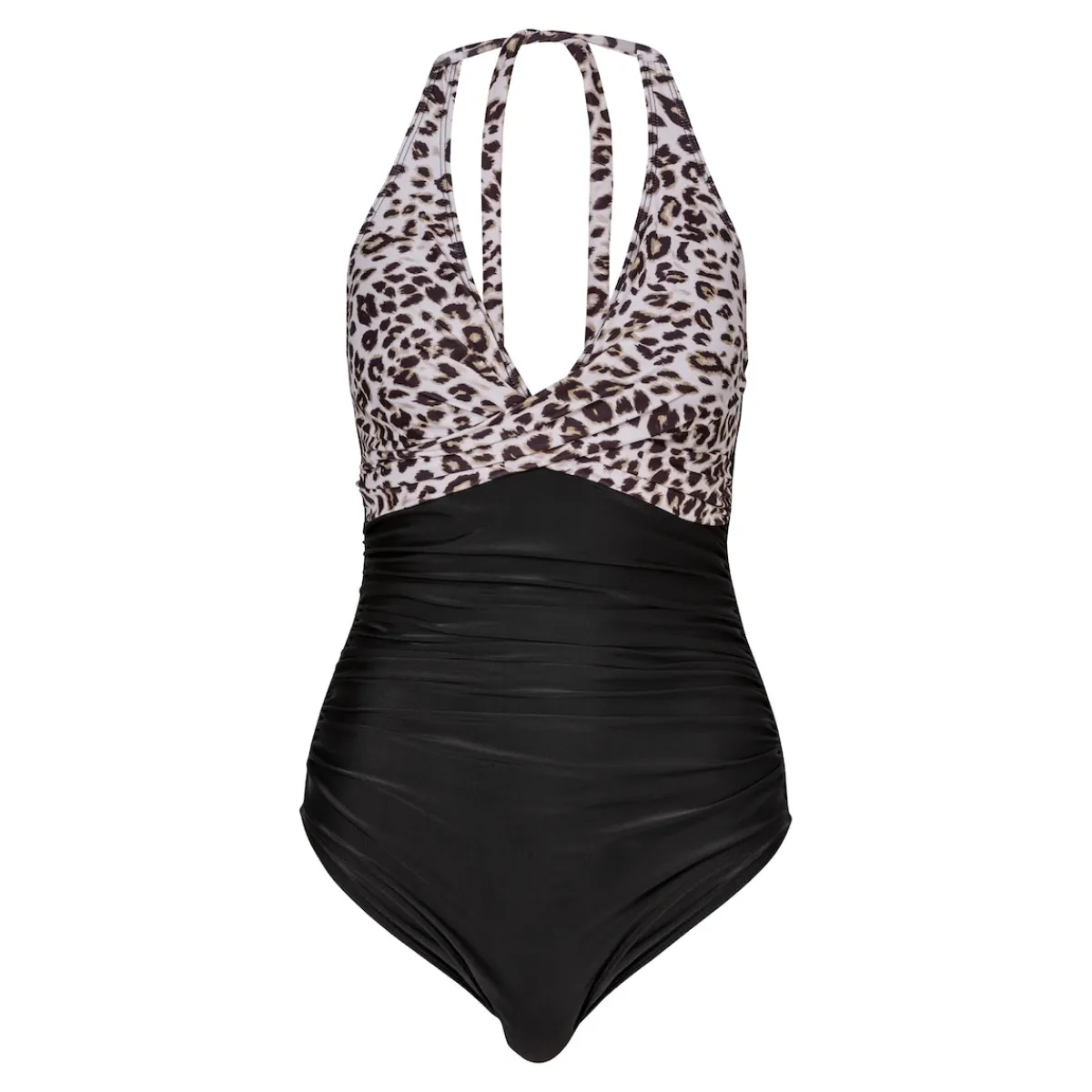 In diesem aufregenden Neckholder-Badeanzug ist Ihnen ein filmreifer Auftritt sicher! Mit kaschierenden Raffungen und herausnehmbaren Cups.