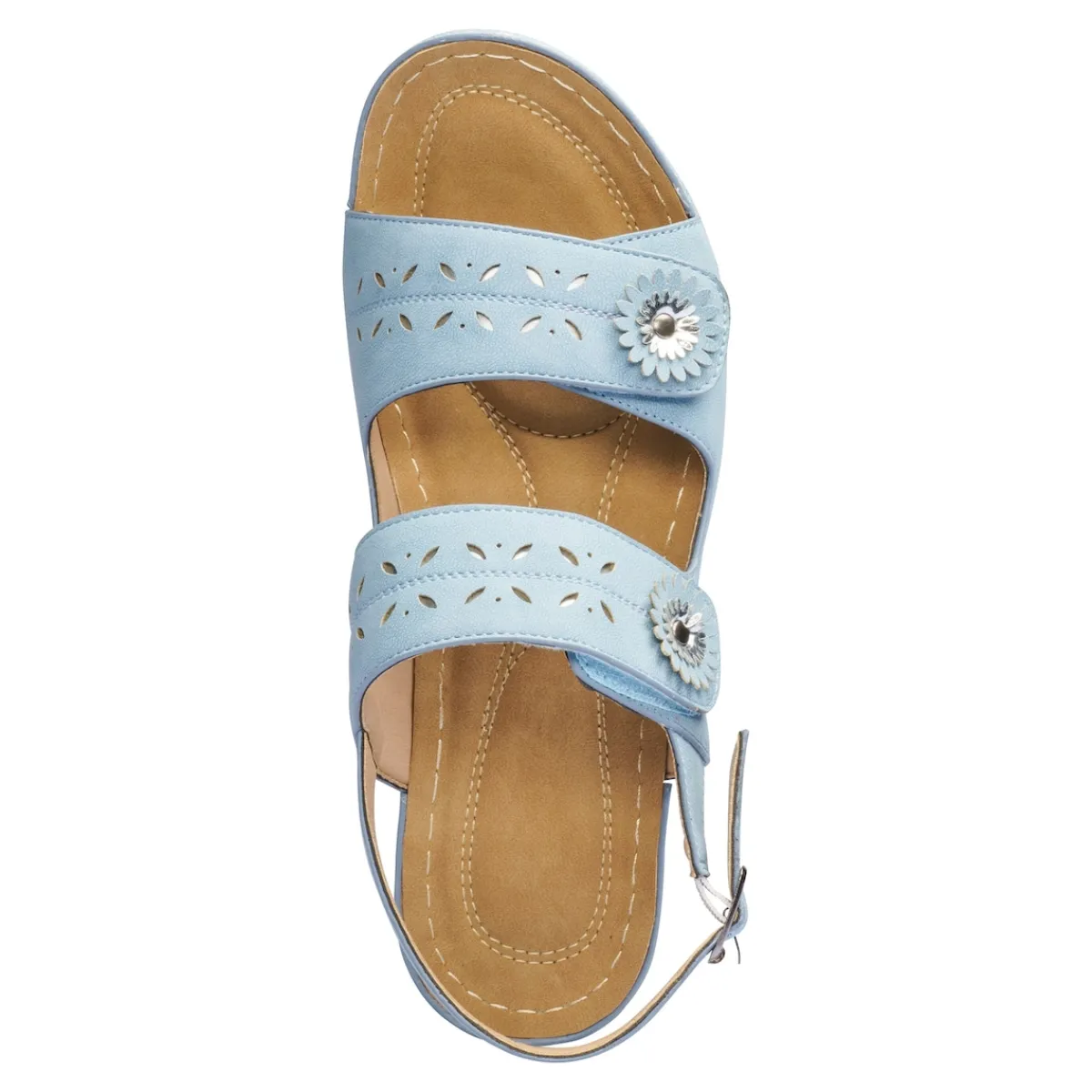 Diese Sandalette von wonderwalk überzeugt auf ganzer Linie. Dank verstellbarem Riemchen mit Stretch-Einsatz an der Ferse und der beiden Klettverschlüsse passt sich der Schuh perfekt an Ihren Fuß an – für einen top Tragekomfort. Die metallischen Blüten-Applikationen machen den Look perfekt. Mit bequemer Absatzhöhe.
