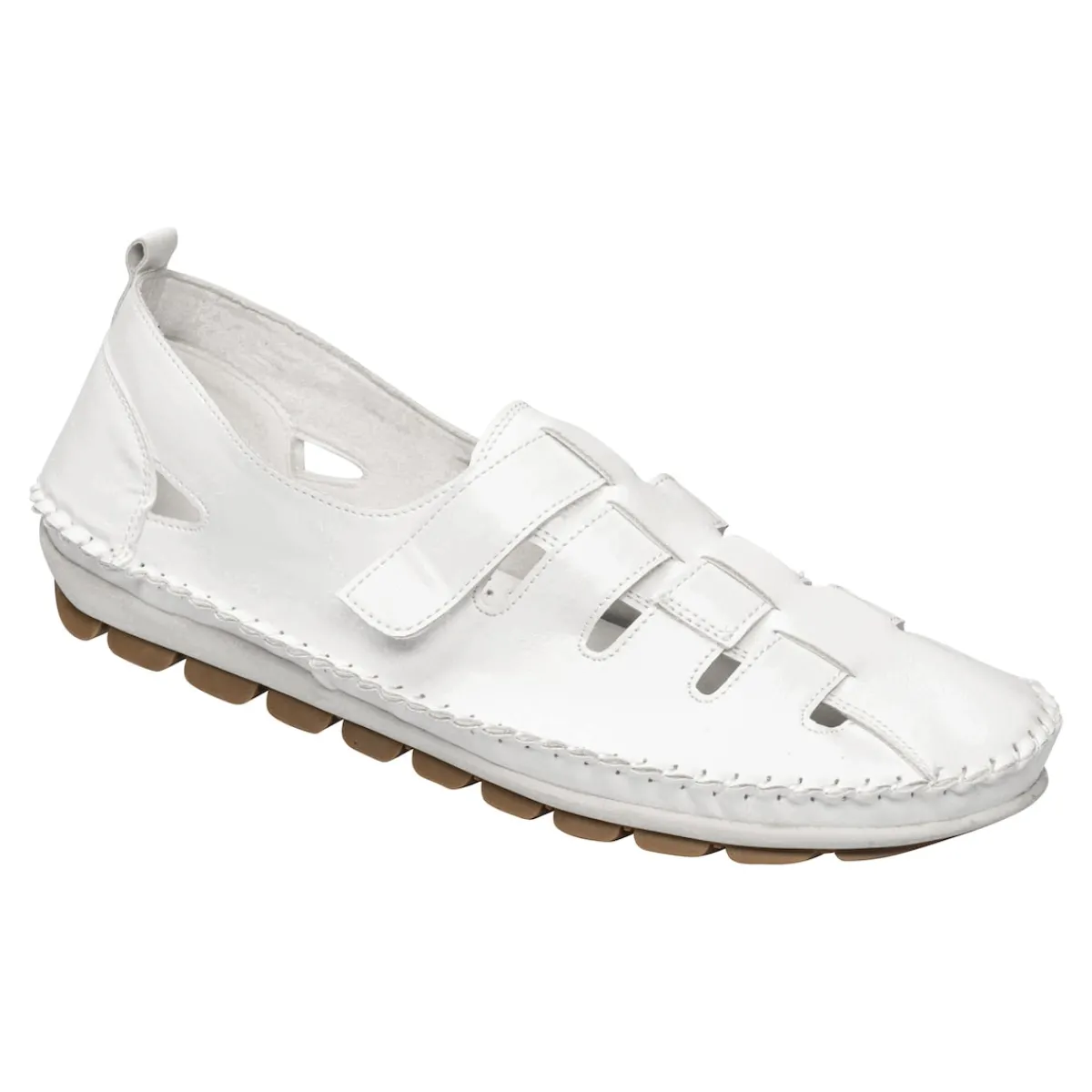 Schlüpfen Sie in den bequemen Mokassin-Slipper und spüren Sie die Leichtigkeit, die dieser Sommerschuh versprüht. Die elegante Leder-Optik und die abgesteppten Nähte setzen stilvolle Akzente, die Ihren Look perfekt unterstreichen. Dank Klettschluss lässt er sich perfekt an Ihren Fuß anpassen. Mit weicher Decksohle und rutschhemmender Laufsohle.