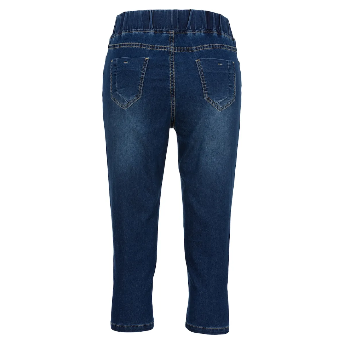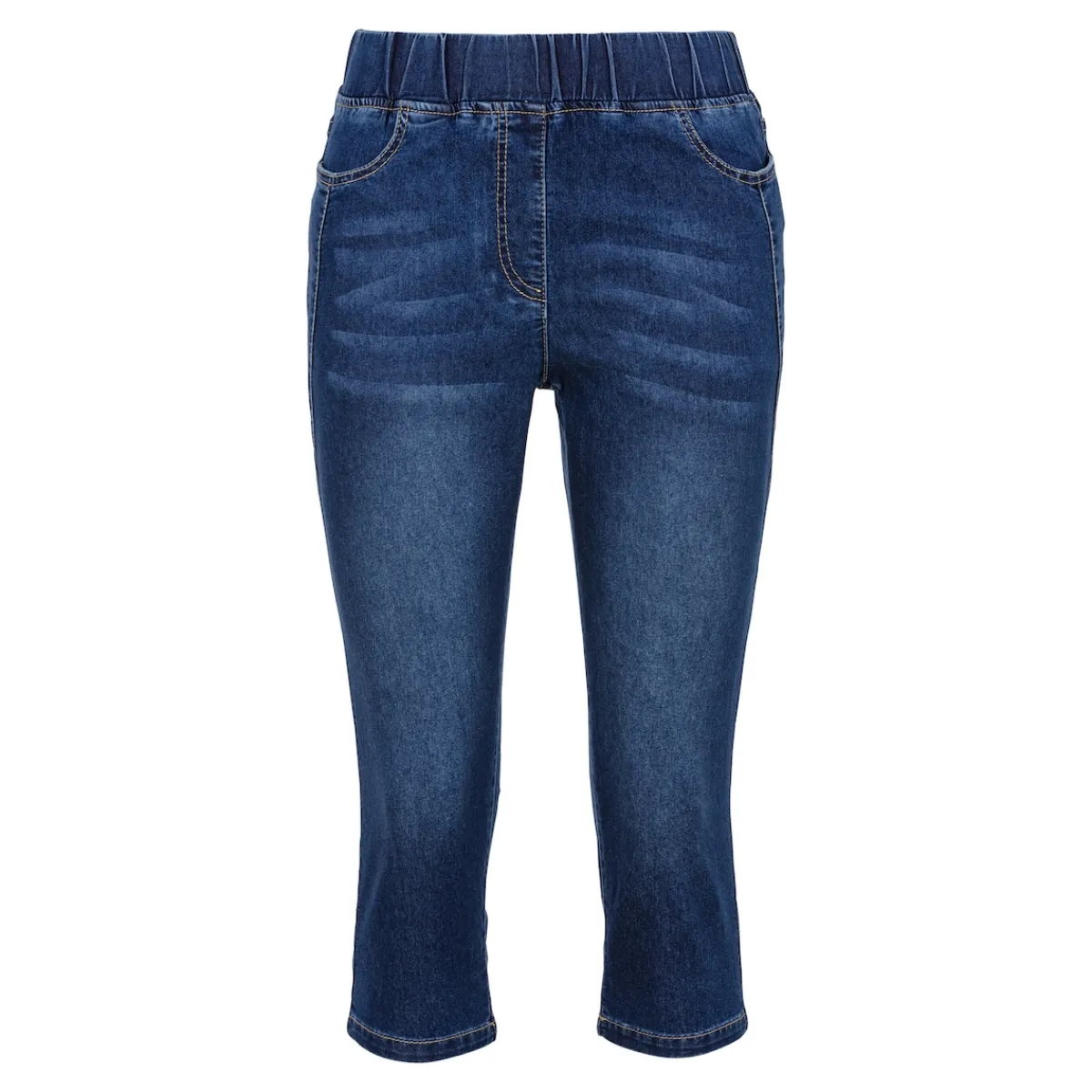 Mögen Sie es gemütlich und doch stylisch? Dann schlüpfen Sie doch einfach in diese elastische und formschöne Capri-Schlupfjeans. Vorne mit seitlichen Eingrifftaschen und Reißverschlussblende, hinten mit 2 Gesäßtaschen.