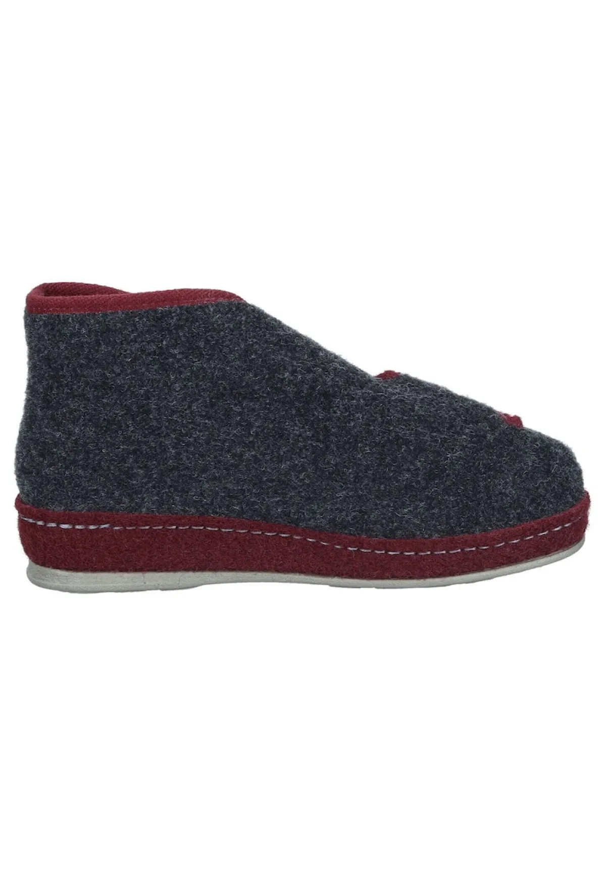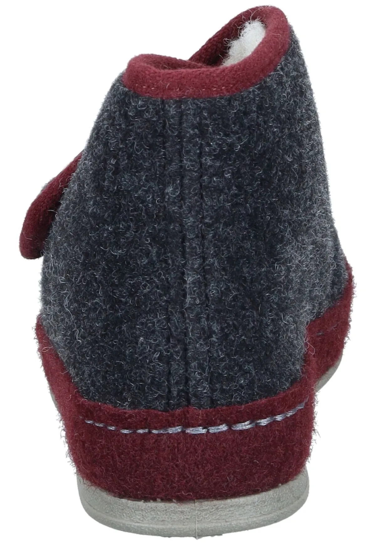 Bei diesem Produkt handelt es sich um einen Schuh aus der Kategorie Klassische Hausschuhe für Damen. Als Obermaterial wurde Filz verwendet und im inneren Bereich des Schuhs wurde Schurwollfutter und Schurwolldecksohle verarbeitet. Die Schuhweite dieses Artikels ist normal und somit standard. Als Verschlussart wurde Klettverschluss gewählt und die PVC-Sohle rundet das Produkt ab. Der Artikel fällt normal aus, bitte die gewohnte Größe bestellen. – Schuhweite: normal –