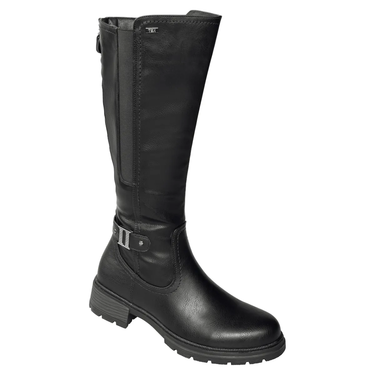 Hineingeschlüpft in den warm gefütterten Stiefel in Leder-Optik: Dank elastischem Einsatz passt er sich optimal Ihrem Bein an – auch bei stärkeren Waden. Mit Reißverschluss für einen schnellen Ein- und Ausstieg, robuster Profil-Laufsohle und einem Blockabsatz von 4 cm. Schafthöhe:34 cm.