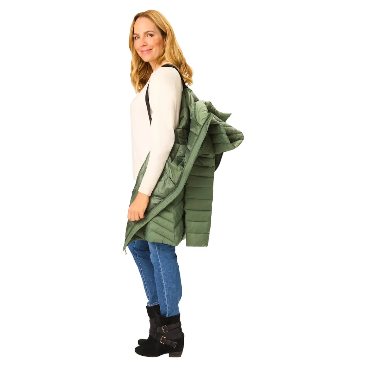 Besonders clever ist das Extra, das diesen Mantel einzigartig macht: eingearbeitete Rucksack-Trageriemen. So können Sie den Mantel ganz einfach auf dem Rücken tragen, wenn es Ihnen zu warm wird, ohne ihn umständlich um die Hüften binden zu müssen. Das sorgt für maximale Bewegungsfreiheit, ganz ohne zusätzliche Belastung für die Hände. Perfekt für unterwegs, wenn Sie flexibel bleiben wollen!