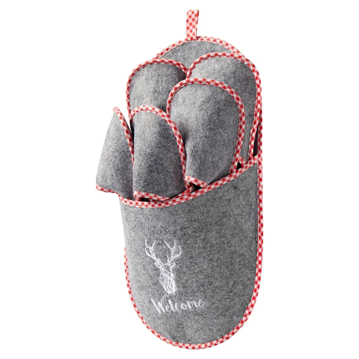 In diesen kuschlig warmen Hauspantoffeln mit trendig eleganter Hirsch-Stickerei wird sich jeder Besuch herzlich willkommen fühlen. Dank des „großen“ Pantoffels sind sie stets griffbereit aufbewahrt – einfach im Flur aufhängen.
