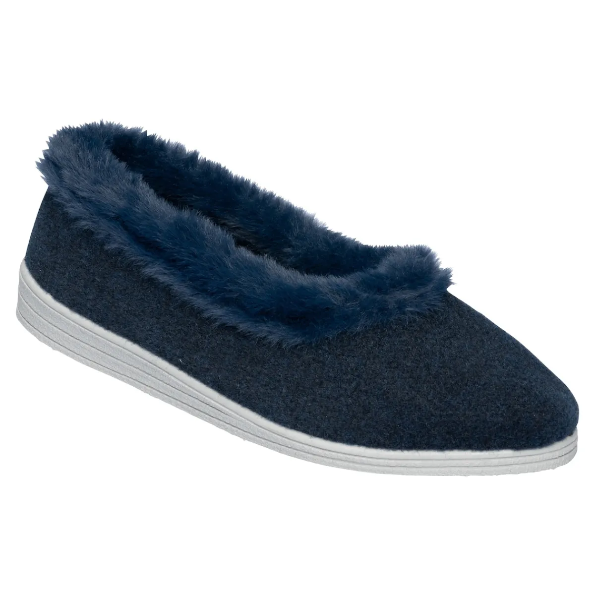 Schicker Hausschuh der Ihre Füße wohlig warm hält. Abgerundet mit weichem Kunstfell am oberen Rand.