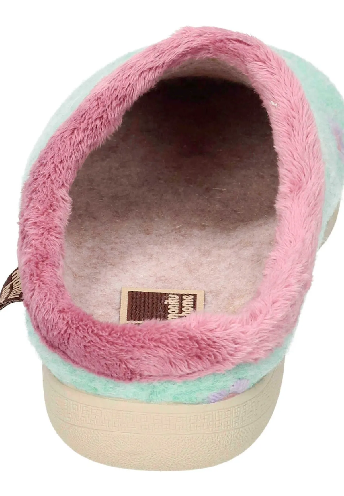Bei diesem Produkt handelt es sich um einen Schuh aus der Kategorie Klassische Hausschuhe für Damen. Als Obermaterial wurde Flauschstoff verwendet und im inneren Bereich des Schuhs wurde Synthetik-Futter und herausnehmbare gefütterte Decksohle verarbeitet. Die Schuhweite dieses Artikels ist normal und somit standard. Als Verschlussart wurde Schlupfschuh gewählt und die Gummisohle rundet das Produkt ab. Der Artikel fällt normal aus, bitte die gewohnte Größe bestellen. – Schuhweite: normal –
