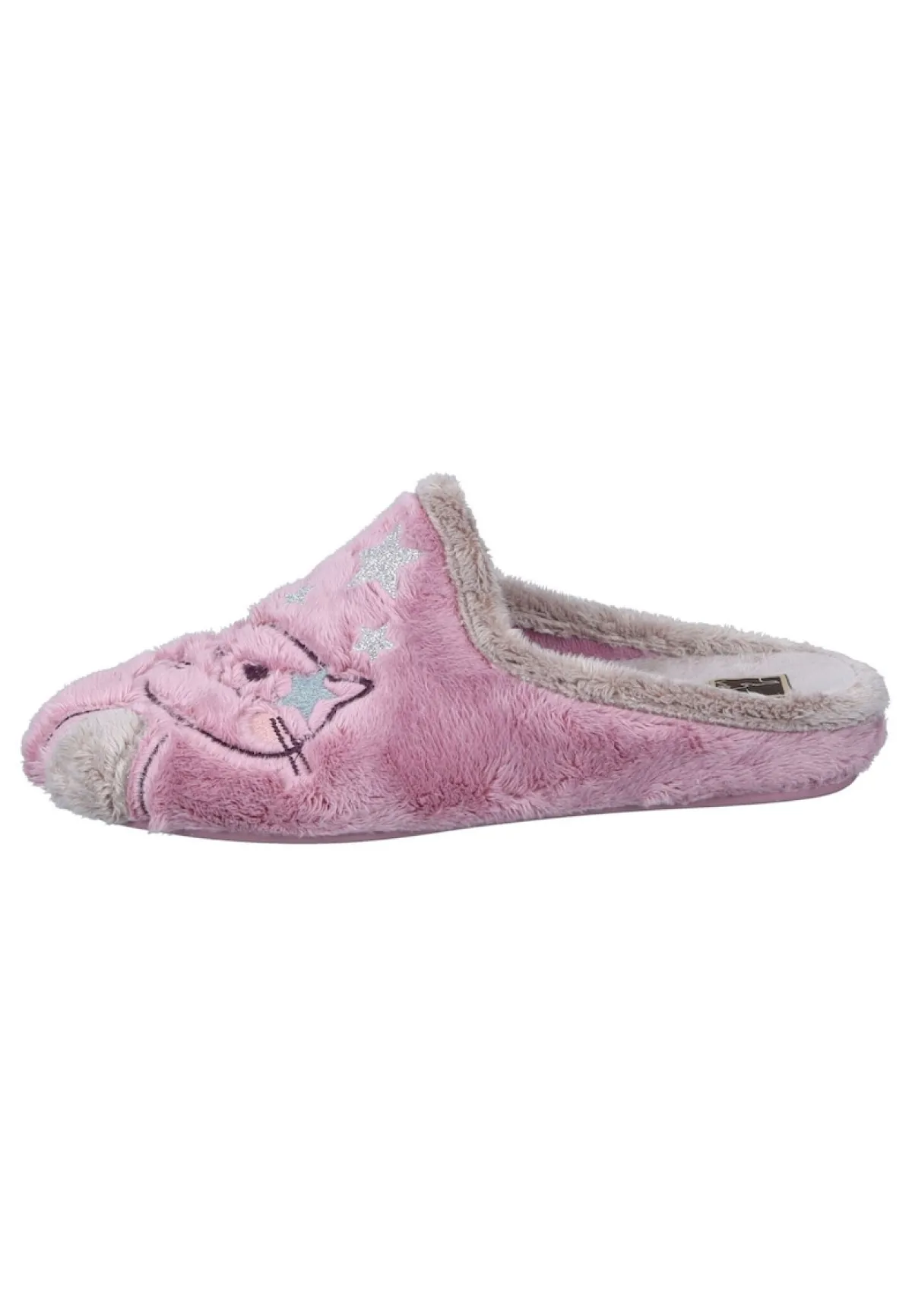 Bei diesem Produkt handelt es sich um einen Schuh aus der Kategorie Klassische Hausschuhe für Damen. Als Obermaterial wurde Flauschstoff verwendet und im inneren Bereich des Schuhs wurde Synthetik-Futter und herausnehmbare gefütterte Decksohle verarbeitet. Die Schuhweite dieses Artikels ist normal und somit standard. Als Verschlussart wurde Schlupfschuh gewählt und die TR-Sohle rundet das Produkt ab. Der Artikel fällt normal aus, bitte die gewohnte Größe bestellen. – Schuhweite: normal –