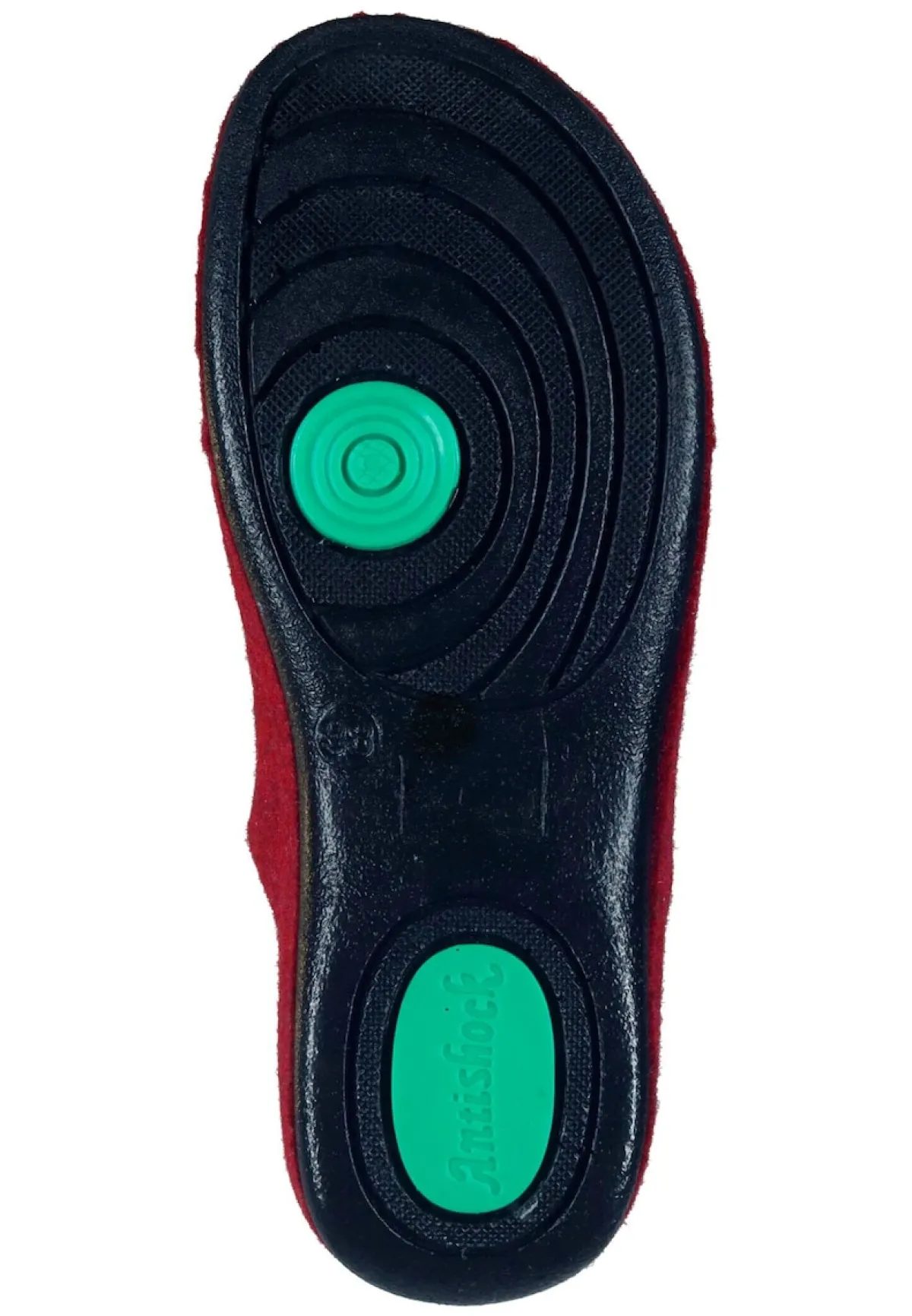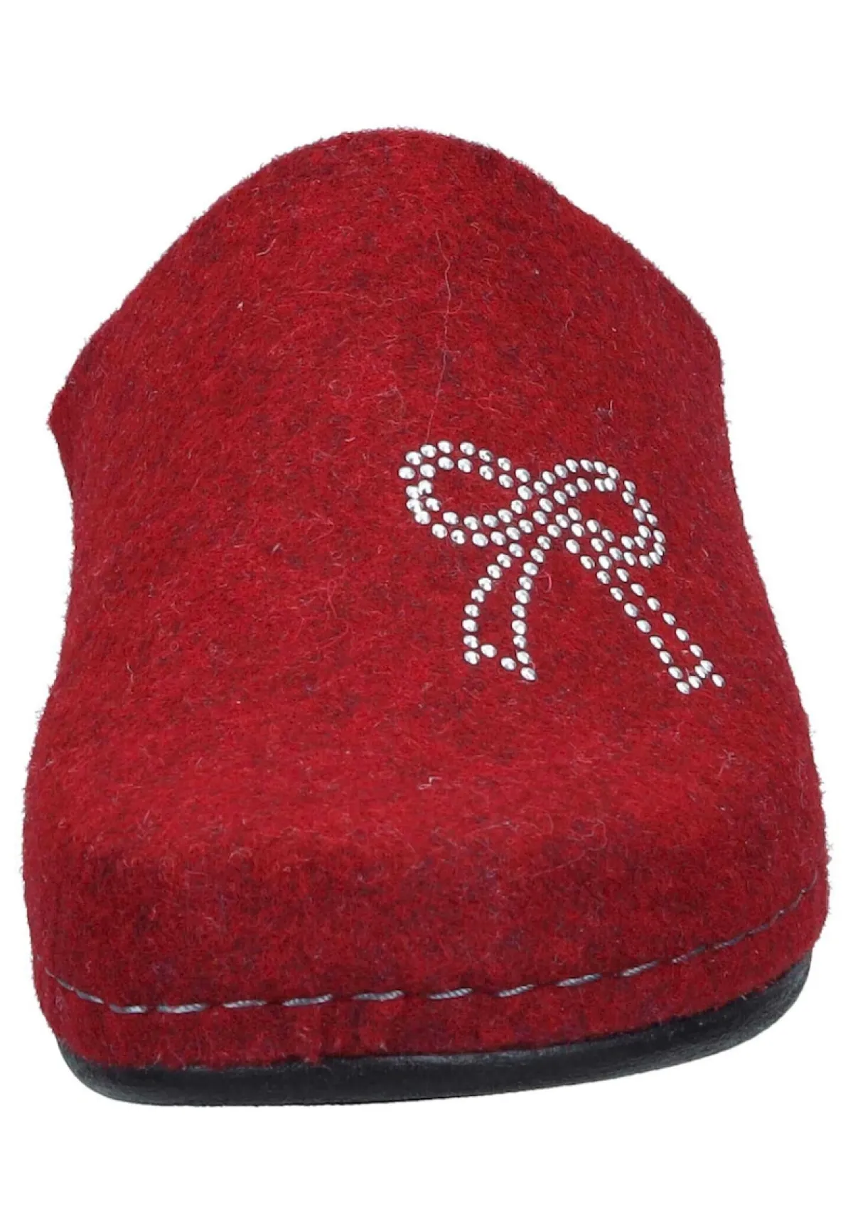 Bei diesem Produkt handelt es sich um einen Schuh aus der Kategorie Klassische Hausschuhe für Damen. Als Obermaterial wurde Wollfilz verwendet und im inneren Bereich des Schuhs wurde ungefüttert und Lederdecksohle verarbeitet. Die Schuhweite dieses Artikels ist Weite G und somit normal. Als Verschlussart wurde Schlupfschuh gewählt und die PU-Sohle rundet das Produkt ab. Der Artikel fällt normal aus, bitte die gewohnte Größe bestellen. – Schuhweite: Weite G –
