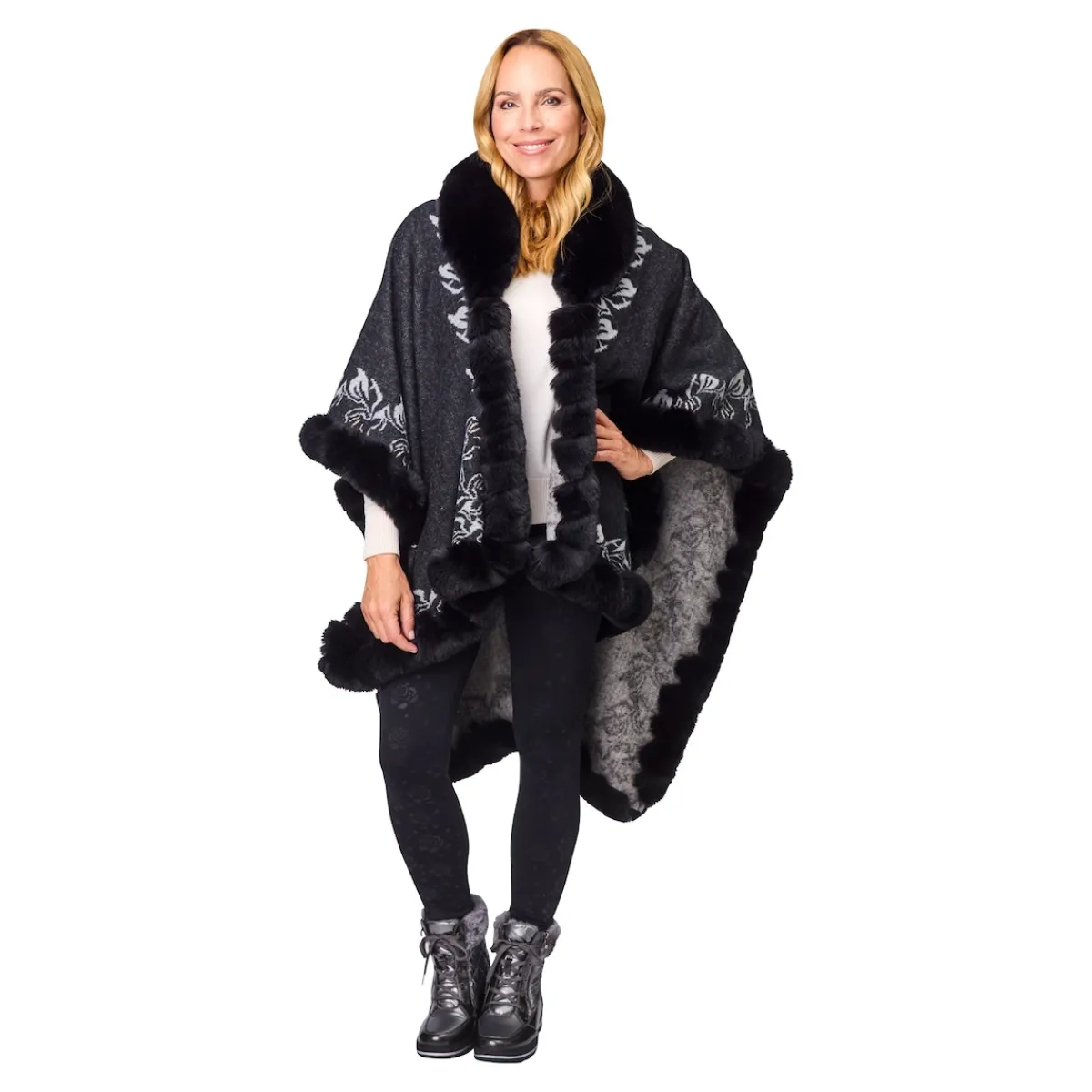 - 2 in 1: Wendeponchomit 2 edlen Designs
