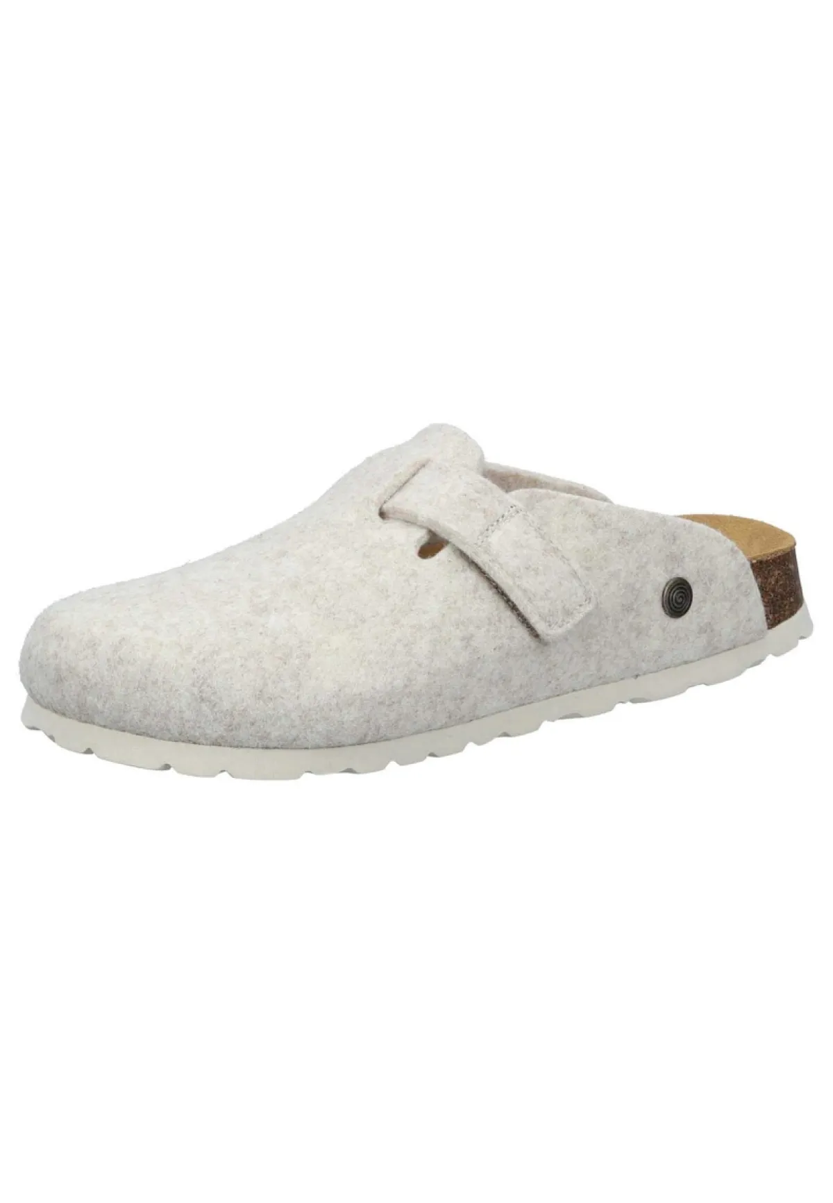 Bei diesem Produkt handelt es sich um einen Schuh aus der Kategorie Klassische Hausschuhe für Damen. Als Obermaterial wurde Wollfilz verwendet und im inneren Bereich des Schuhs wurde ungefüttert und weiche Lederdecksohle, gepolstertes Naturform-Korkfußbett verarbeitet. Die Schuhweite dieses Artikels ist Weite G und somit normal. Als Verschlussart wurde Schlupfschuh gewählt und die Leichtzellsohle rundet das Produkt ab. Der Artikel fällt normal aus, bitte die gewohnte Größe bestellen. – Schuhweite: Weite G –