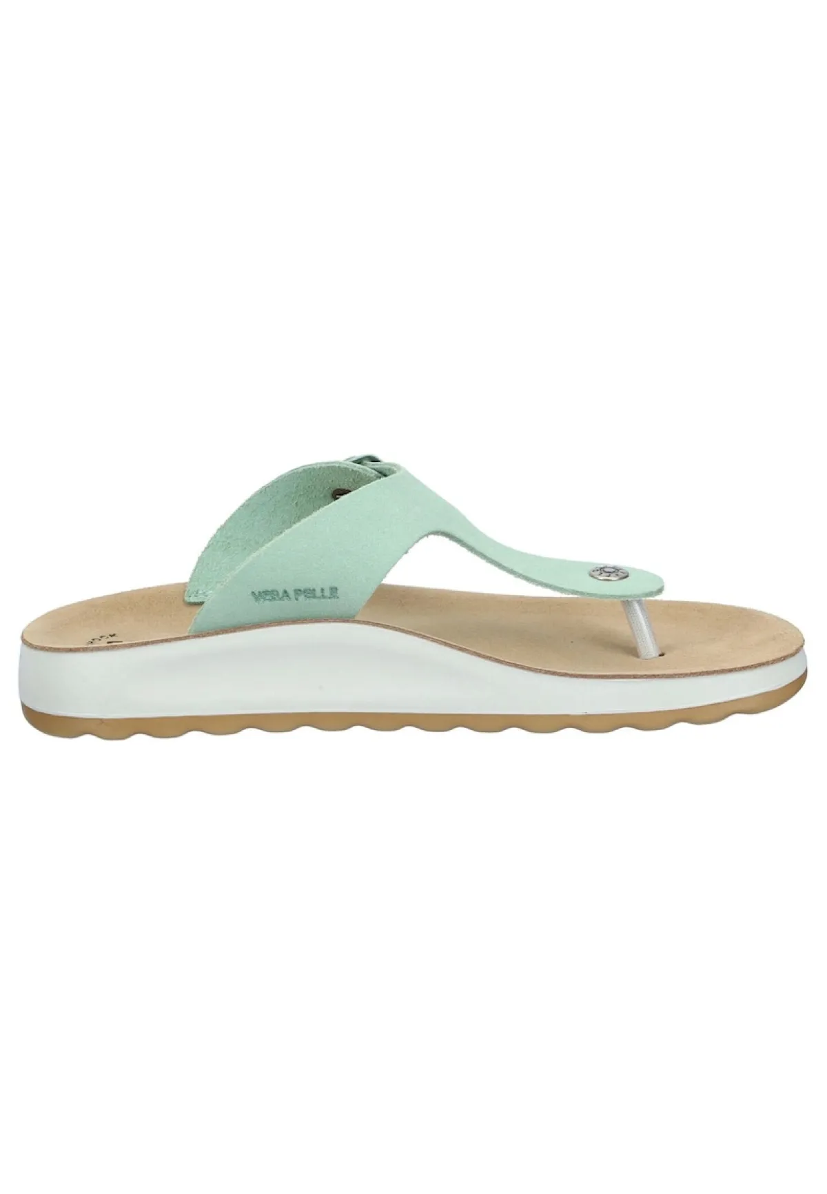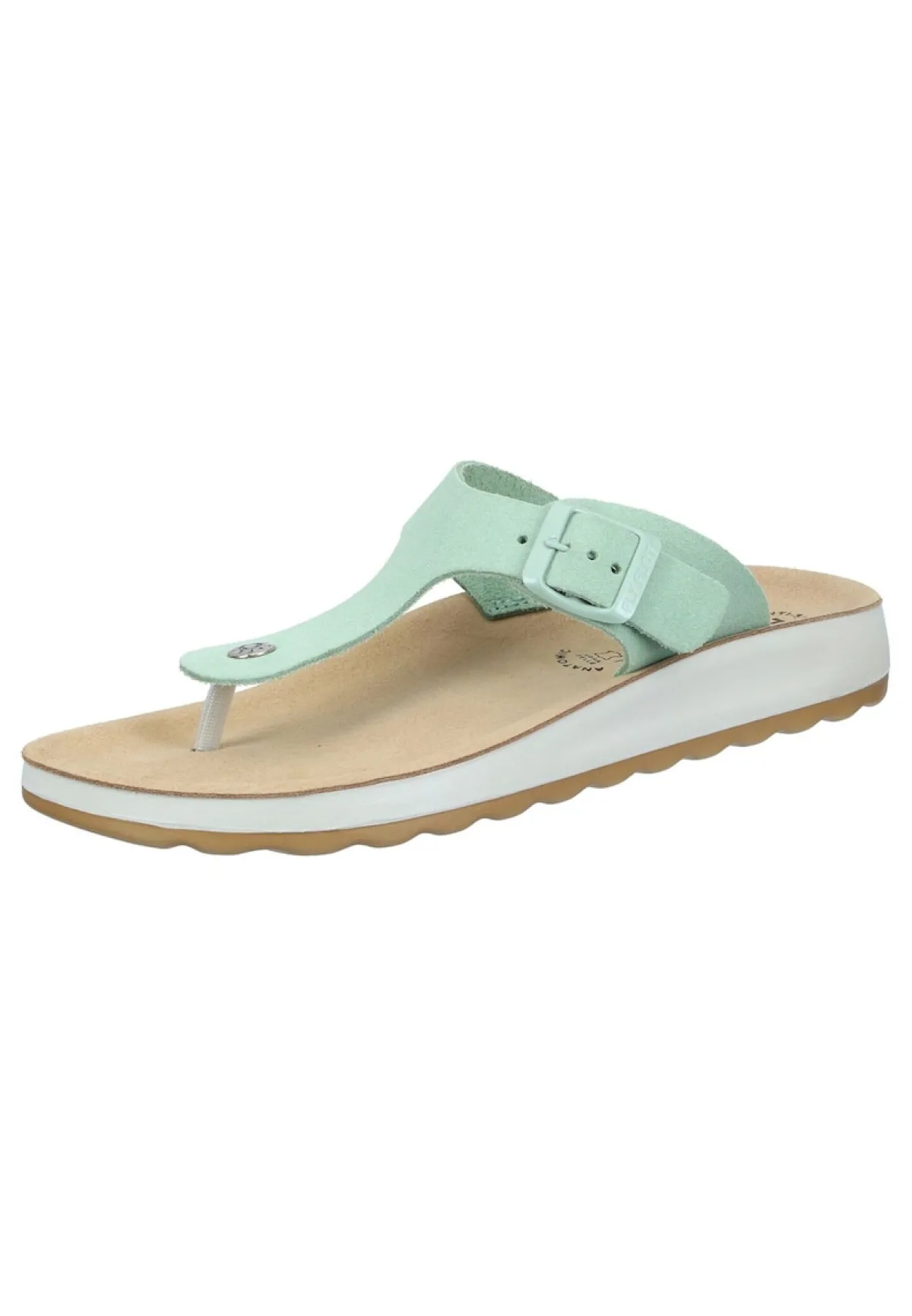Bei diesem Produkt handelt es sich um einen Schuh aus der Kategorie Zehentrenner für Damen. Als Obermaterial wurde Veloursleder verwendet und im inneren Bereich des Schuhs wurde ungefüttert und gepolsterte Lederdecksohle verarbeitet. Die Schuhweite dieses Artikels ist normal und somit standard. Als Verschlussart wurde Schlupfschuh gewählt und die PU-Sohle rundet das Produkt ab. Der Artikel fällt normal aus, bitte die gewohnte Größe bestellen. – Schuhweite: normal –