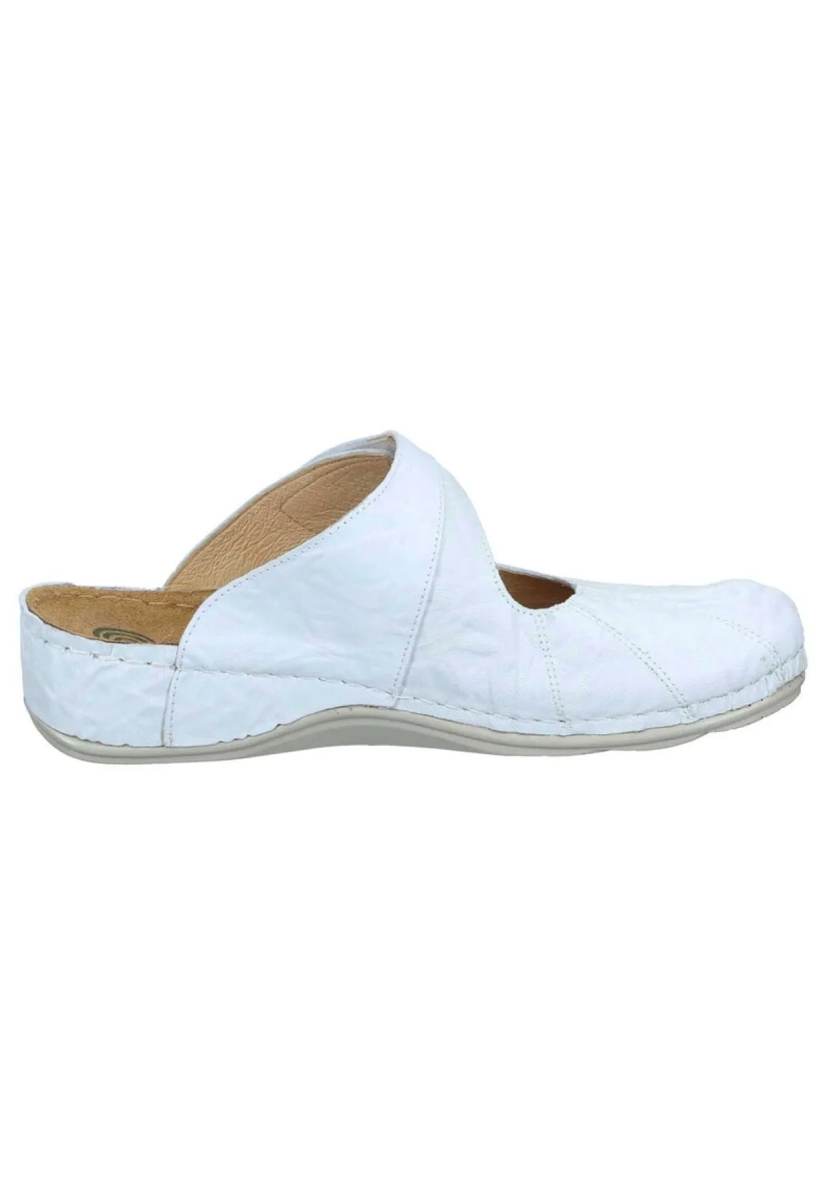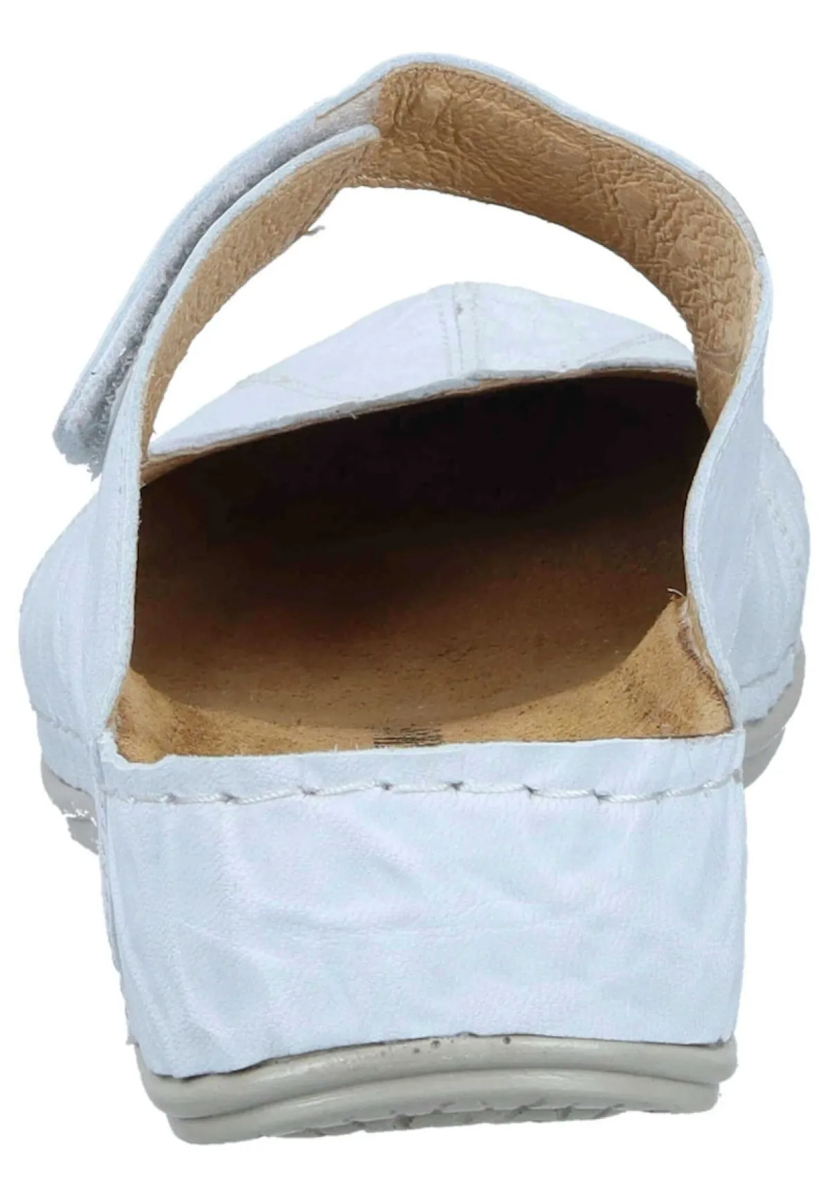 Bei diesem Produkt handelt es sich um einen Schuh aus der Kategorie Komfort-Pantoletten für Damen. Als Obermaterial wurde Leder verwendet und im inneren Bereich des Schuhs wurde Lederfutter und Lederdecksohle verarbeitet. Die Schuhweite dieses Artikels ist Weite G und somit normal. Als Verschlussart wurde Schlupfschuh gewählt und die PU-Sohle rundet das Produkt ab. Der Artikel fällt normal aus, bitte die gewohnte Größe bestellen. – Schuhweite: Weite G –