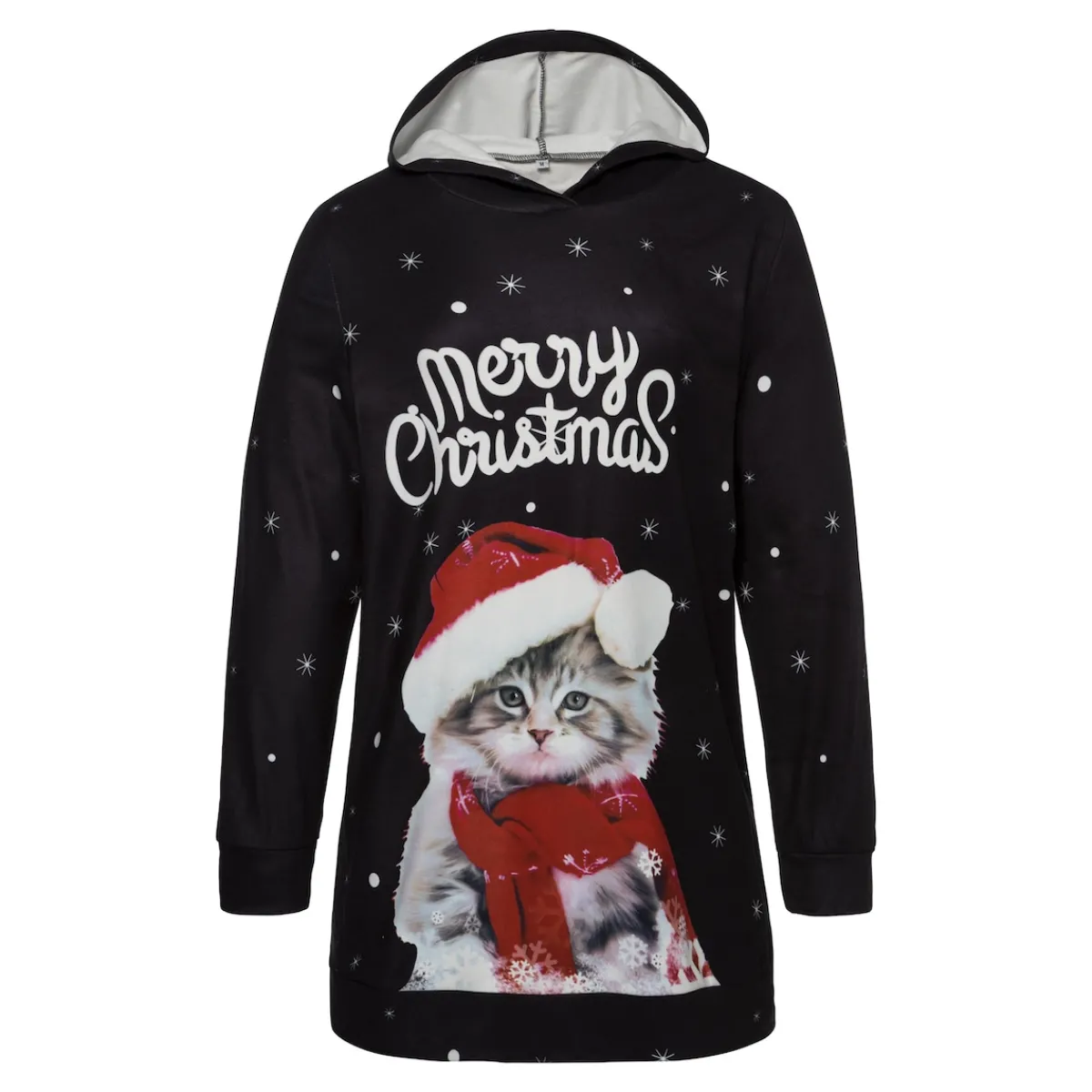 Für schnurrige Schmusestunden: Das niedliche Kätzchen macht dieses extra lange Sweatshirt zum Festtags-Highlight. Kuschelweich und gemütlich, begleitet es Sie warm und stilvoll durch die Weihnachtstage.