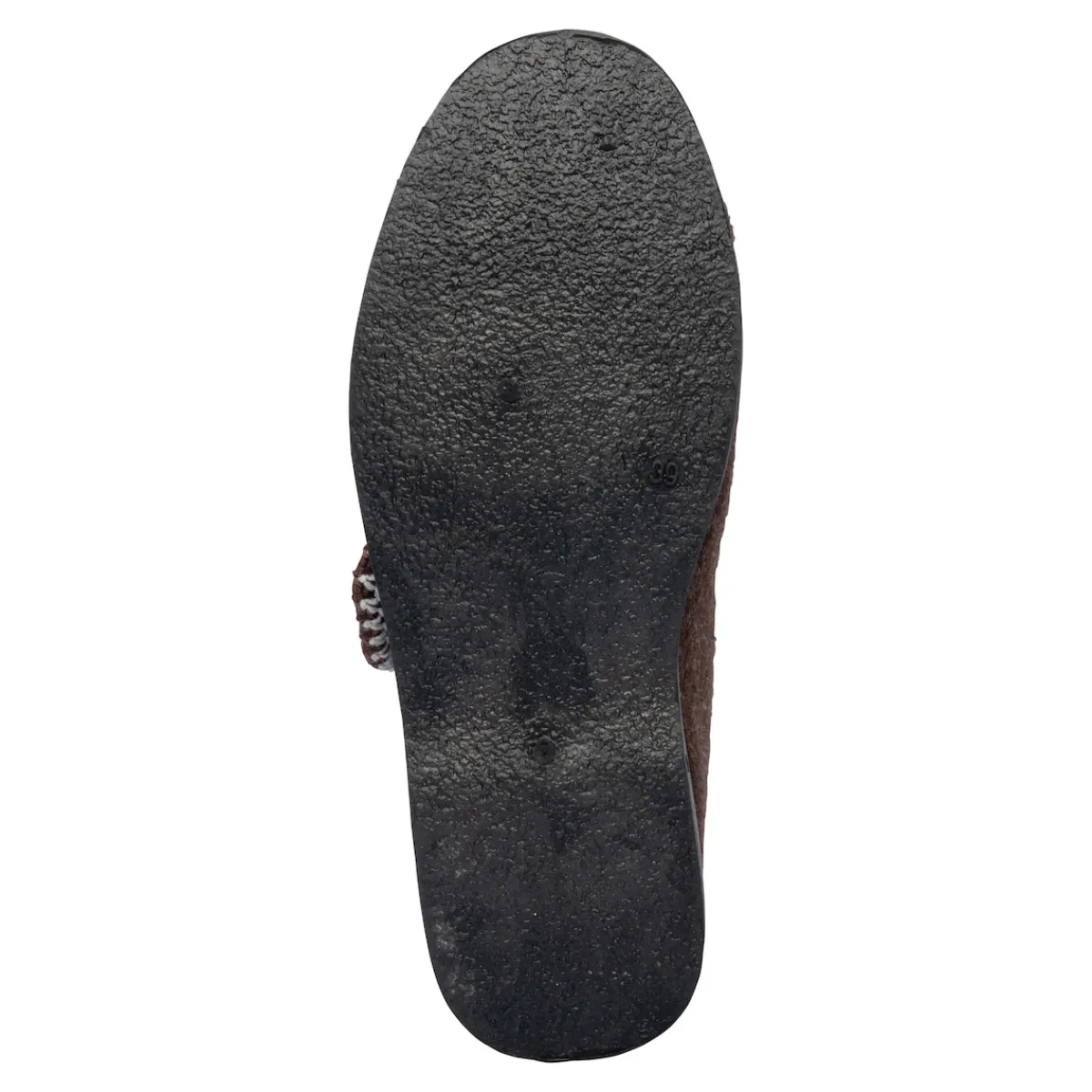 Dank Klettverschluss ist dieser mit Wolle gefütterte Hausschuh schnell an- und ausgezogen und optimal an Ihren Fuß angepasst – auch bei breiteren Füßen. Mit rutschhemmender Gummi-Laufsohle.