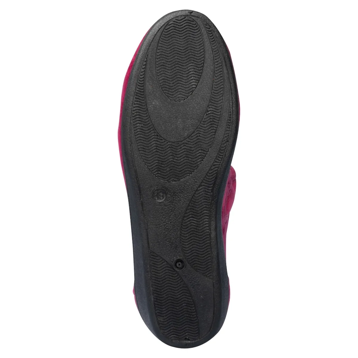 Tänzeln Sie bequem durchs ganze Jahr: in diesem Hausschuhballerina! Bei kühlen Temperaturen spendet die Gratis-Einlegesohle aus Wolle Extra-Wärme! Der Klettverschluss mit süßer Rosenstickerei macht den Ein- und Ausstieg zum Kinderspiel! Mit rutschhemmender Gummi-Laufsohle.