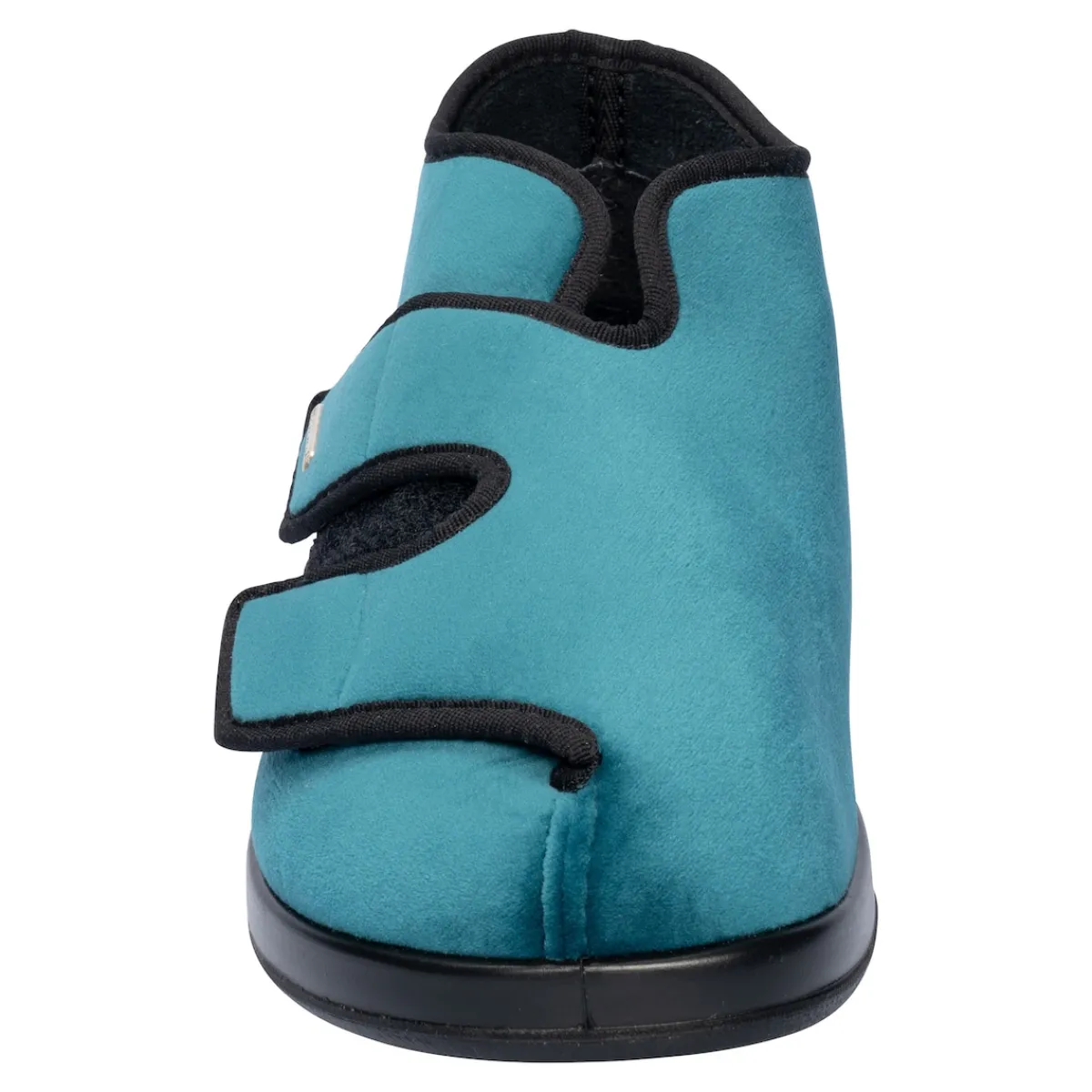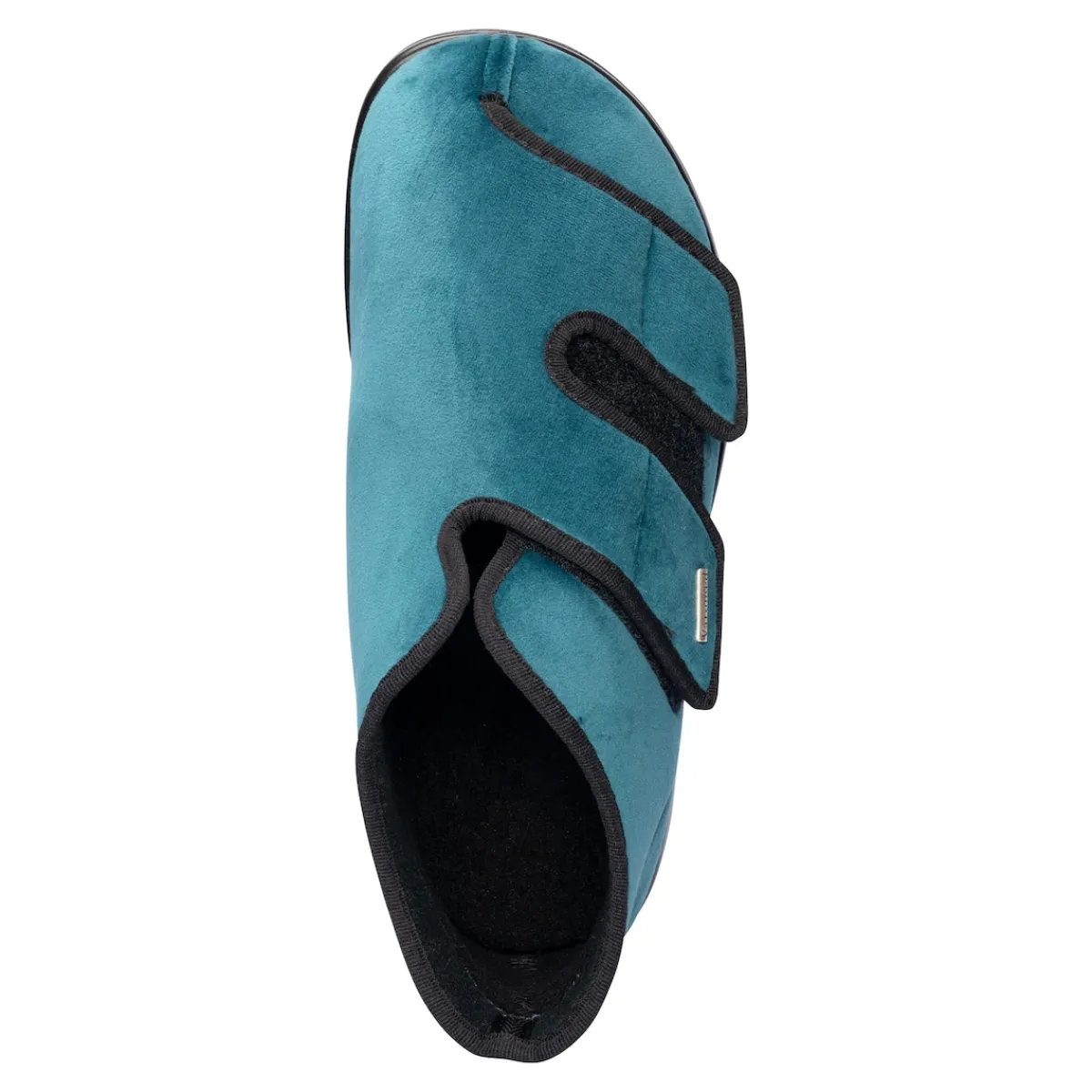 Angenehmer Sitz und komfortables An- und Ausziehen, dank breitem Klettverschluss und bequemer Weite L. Weiches Frotteefutter – damit bleiben die Füße immer schön warm. Mit 3 mm Weichschaumeinlage und rutschhemmender PU-Laufsohle.