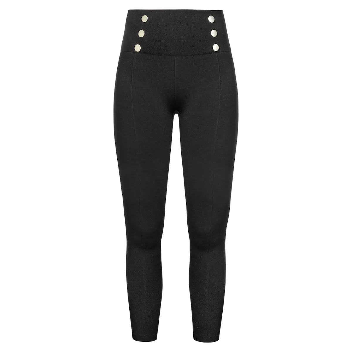 Diese warm gefütterte Leggings mit hohem Bund schmiegt sich perfekt an Ihre Figur an. Biesen strecken das Bein, silberfarbene Zierknöpfe sorgen für einen edlen Look.