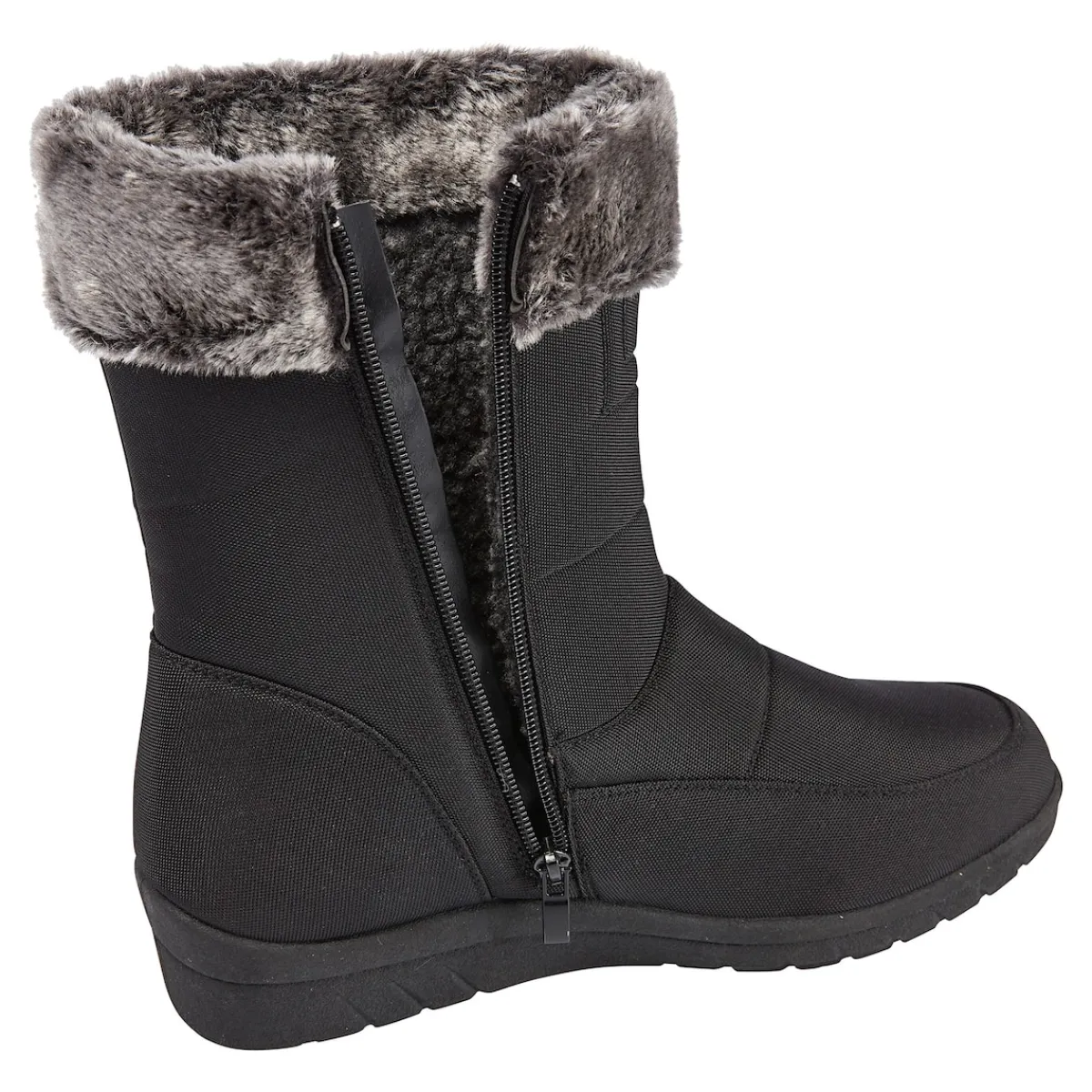 So modisch sind Winterstiefel heute: mit aufwendiger Schneeflocken-Stickerei und schönem Kunstfellrand. Das wärmende Futter verspricht ein angenehmes Fußklima, die profilierte Laufsohle unterstützt einen sicheren Tritt. Leichter Einstieg dank Reißverschluss.