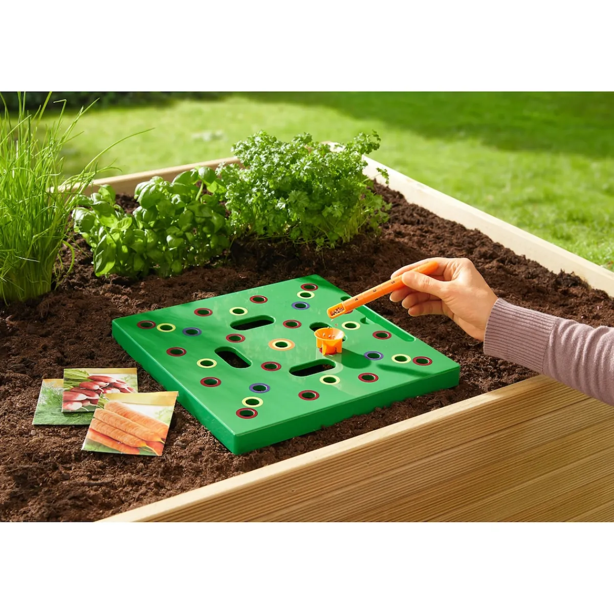 Mit dieser 3-teiligen Sähilfe ziehen Sie Gemüse oder Blumen mühelos und präzise heran. Das Saatbrett sorgt für gleichmäßige Abstände, der Einsetzstab und Trichter bringen das Saatgut genau platziert in die Erde. Die heranwachsenden Pflänzchen haben so den nötigen Platz zum Gedeihen. Inkl. ausführlicher Anleitung.