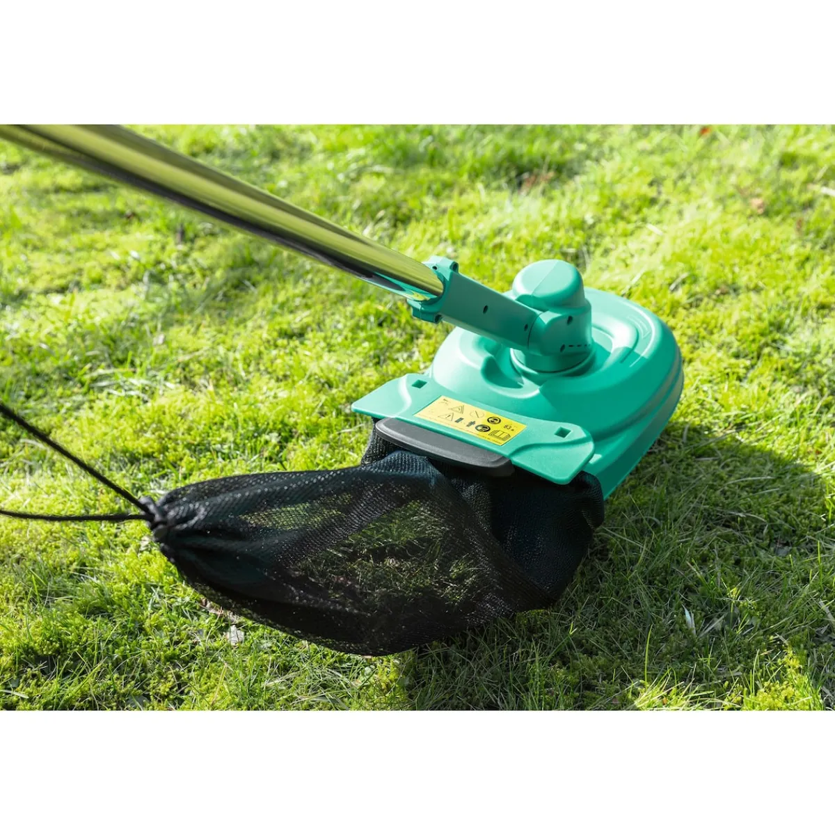Dank des flexiblen Auffangnetzes mit einem Volumen von ca. 6 Litern wird das Schnittgut direkt aufgenommen – lästiges Zusammenrechen entfällt. Der kraftvolle 12V-Akku ermöglicht bis zu 25 Minuten kabelloses Arbeiten mit voller Bewegungsfreiheit. Der Trimmer erreicht 8000 Umdrehungen pro Minute, die langlebigen PA66-Klingen aus glasfaserverstärktem Kunststoff sorgen für ein sauberes, gleichmäßiges Schnittbild.