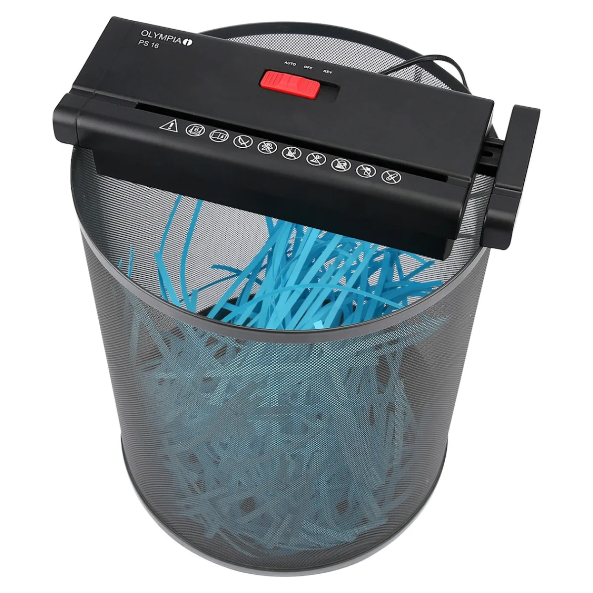 Mit ausziehbarem Haltebügel, universell einsetzbar. Schneidet in 6 mm breite Streifen. Qualitätsstahlschneidwerk, Antriebsmotor mit Überhitzungsschutz. Automatische Start-/Stoppfunktion dank Sensor. Mit Rücklauffunktion. 220-240 Volt, 50 Hz, 0,9 Ampere, 210 Watt. Kurzzeitbetrieb 2 Minuten. Kabellänge ca. 1,4 m.