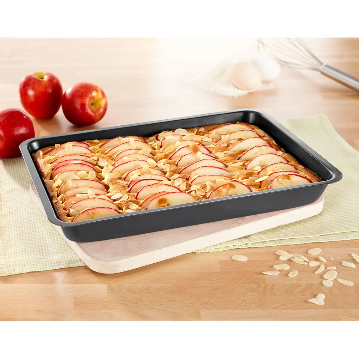 Dieses Set aus 3 Blechen in verschiedenen Größen eignet sich für die unterschiedlichsten Ofengerichte. So haben Sie für Hähnchen, Ofenkartoffeln, Blechkuchen und andere Köstlichkeiten immer die passende Variante zur Hand.