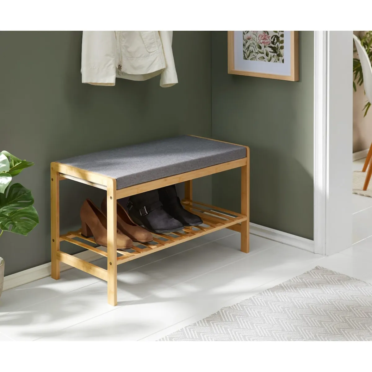 Schuhchaos im Flur? Mühevolles Bücken beim Schuhe anziehen? Dann ist diese kompakte Schuhbank in edler Optik genau die praktische Lösung, auf die Sie gewartet haben. Nehmen Sie Platz auf der bequem gepolsterten Sitzbank. Eine Etage tiefer sind Ihre Schuhe ordentlich verstaut und jederzeit griffbereit.