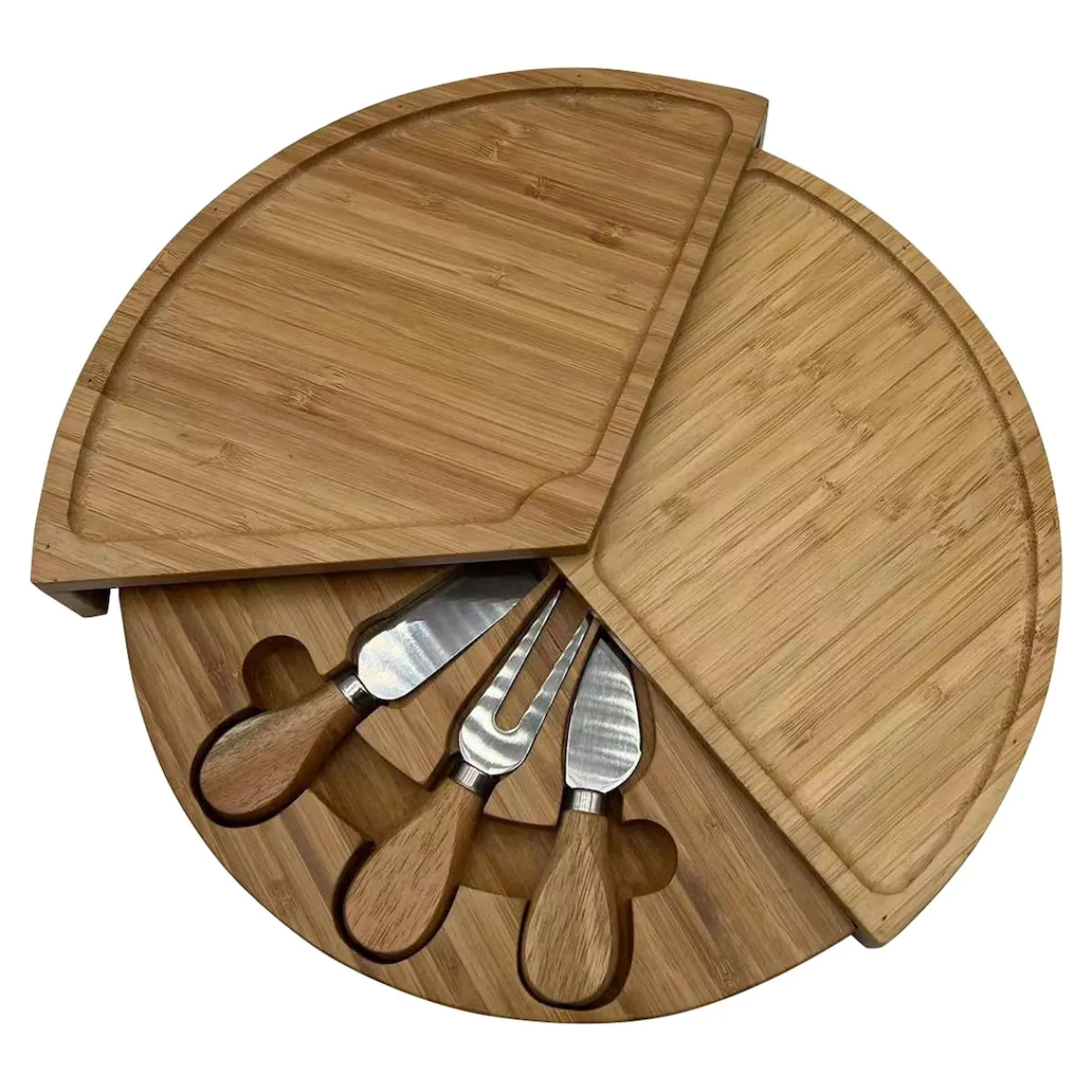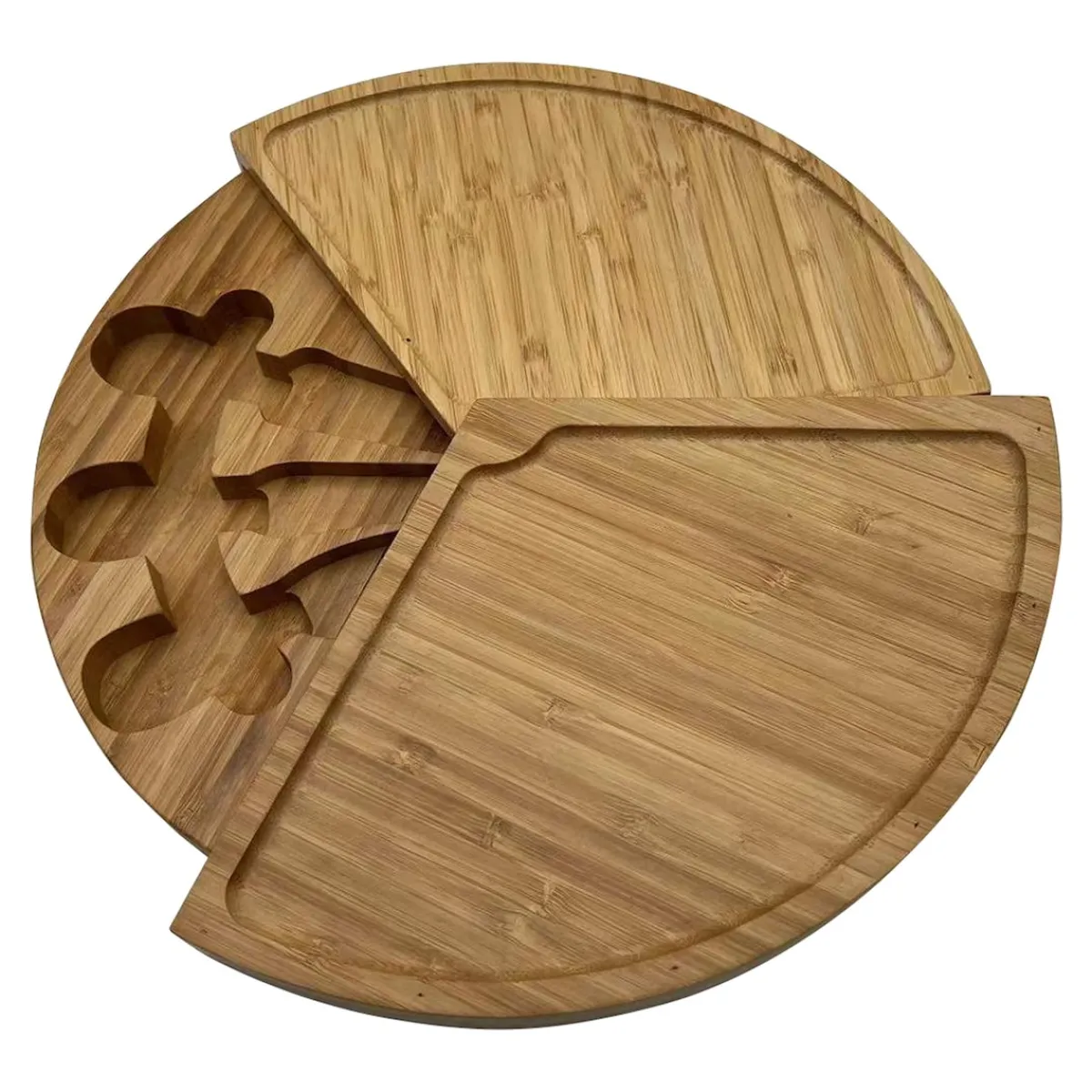 Die schönste Art zu servieren: Auf diesem Snack-Teller aus nachhaltigem Bambus richten Sie Wurst, Käse, Trauben & Co. stilvoll an – Serviergabel, Käsemesser und Parmesanbrecher inklusive! Die 3 Ebenen lassen sich platzsparend ineinander schieben. Ideal für Buffets, zur Brotzeit, auf Feiern – oder jeden Tag beim Abendbrot!