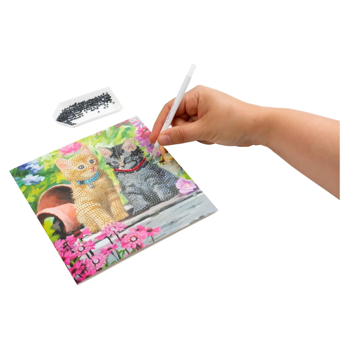 Grußkarten – Überraschen Sie Ihre Lieben mit einer selbstgestalteten, funkelnden Grußkarte zum Aufklappen. Bastel-Set mit Vorlage, Kuvert, Zauberstift, vielen bunten Steinchen und Schälchen zum Sortieren der Steinchen.