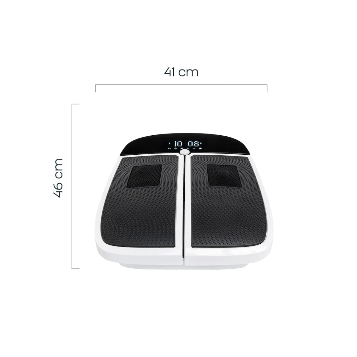Der Beintrainer kann die Schmerzen in müden Beinen lindern und Füßen, verbessert die Durchblutung und erhöht die Muskelkraft durch das Vibrationssystem und die Fähigkeit, sich perfekt an die Fußsohle anzupassen. Darüber hinaus lindert das Fußmassagegerät auch Beschwerden durch Krampfadern. Sie können das Gerät mit 20 Geschwindigkeiten und 5 verschiedenen Programmen nach Ihren Wünschen einstellen. Für zusätzliche Vorteile können Sie die Akupressurmassageköpfe für eine entspannende Fußmassage einschalten. Mit der Fernbedienung können Sie Geschwindigkeit, Intensität und Programm einfach einstellen, ohne aufstehen zu müssen.