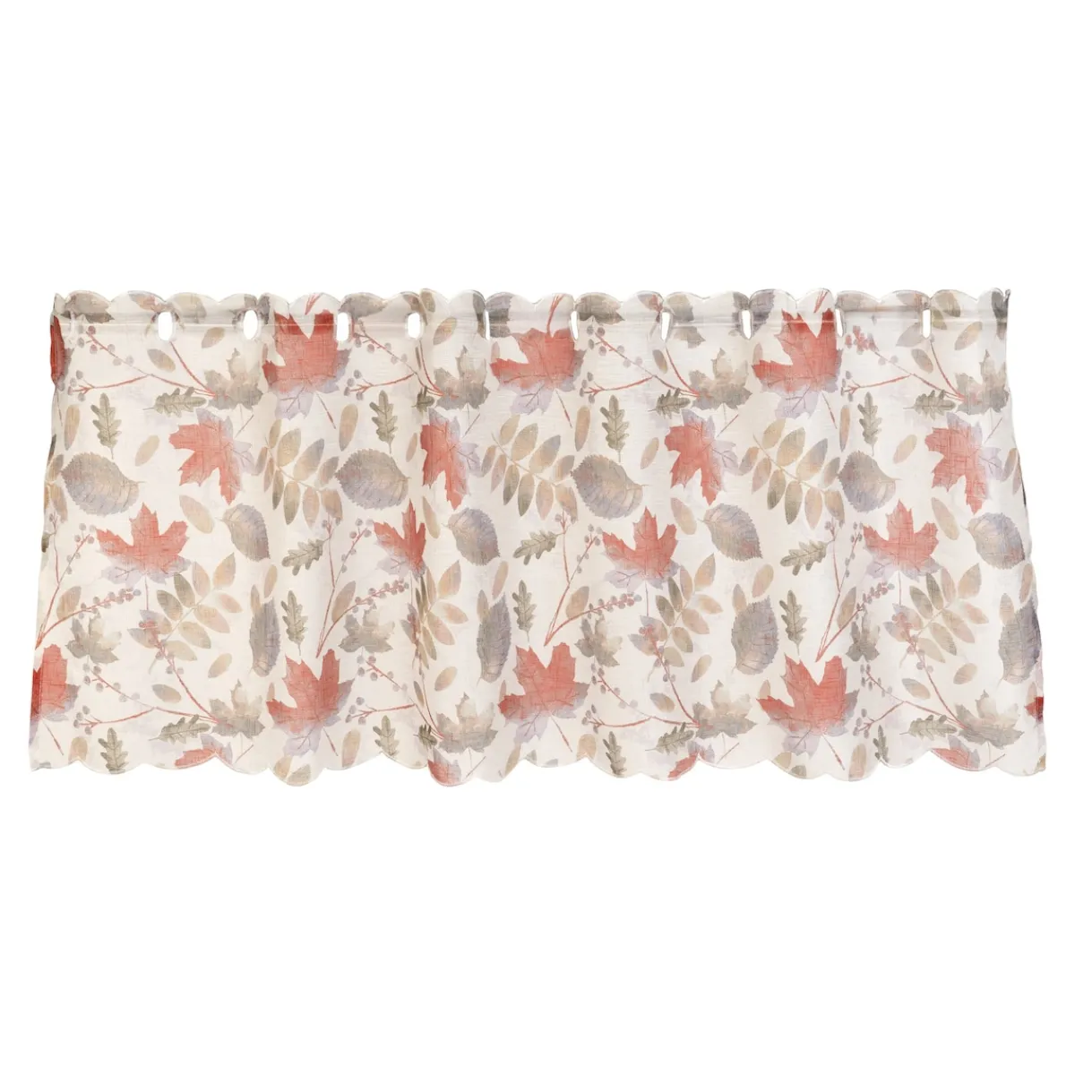 Selbst wenn die Bäume draußen kahl werden, erfreut Sie diese hochwertige Bistrogardine im Blätterdesign noch lange mit ihren geschmackvollen Farben und den eingearbeiteten goldfarbenen Akzenten!