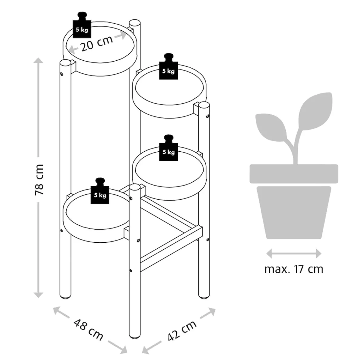 Mit diesem stilvollen Blumenständer setzen Sie Ihre Pflanzen und Deko-Elemente gekonnt in Szene. Drei Ablagen bieten ausreichend Platz, um kreative Arrangements zu gestalten. Dabei überzeugt das platzsparende Design durch seine Vielseitigkeit – ganz gleich, ob im Schlafzimmer, Wohnzimmer oder Wintergarten. Das moderne, harmonisch abgestimmte Erscheinungsbild wertet jeden Raum auf und bringt Natürlichkeit in Ihr Zuhause. Entscheiden Sie sich für eine stilvolle Lösung, die Form und Funktion perfekt vereint.