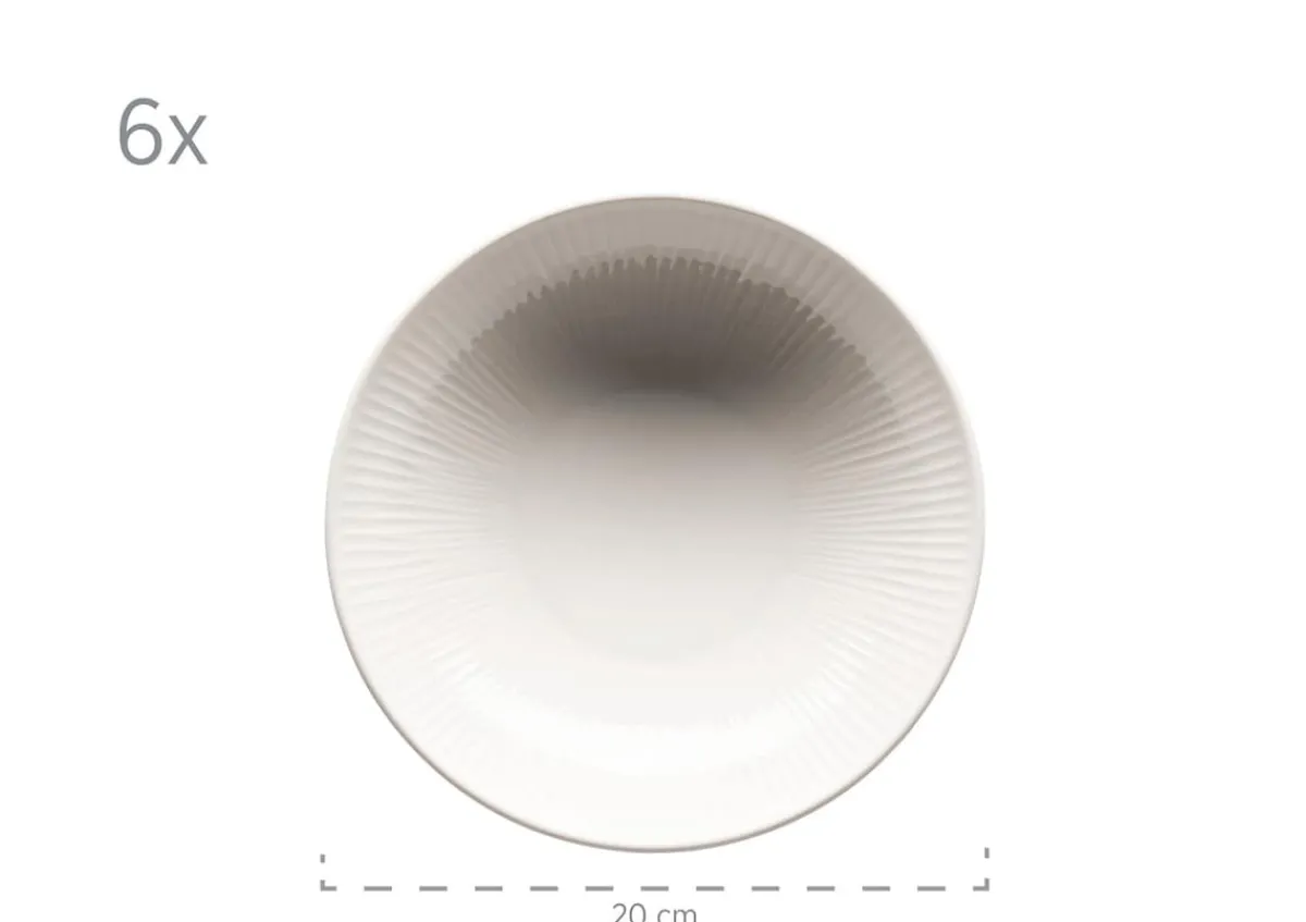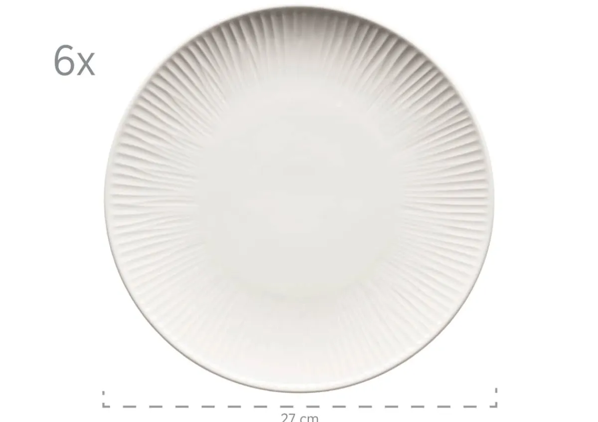 Die Tafelgeschirr Serie DALIA aus robustem Durable Porzellan in Gastronomiequalität bringt einen Hauch von Eleganz und Vintage-Look auf Ihren Esstisch – nicht nur zu besonderen Anlässen, sondern aufgrund ihrer Alltagstauglichkeit an jedem Tag. Die leicht unregelmäßige, filigrane Rippenstruktur wird Ihre Gäste verzaubern, ohne Ihren Speisen die Show zu stehlen. Kombinieren Sie dieses Tafelservice mit einem Frühstücksgeschirr-Set derselben Serie, um ein vollständiges Kombiservice für 6 Personen zu erhalten. Die in den Fotos angegebenen Füllmengen beziehen sich aus Gründen der Vergleichbarkeit auf eine Befüllung bis zum oberen Gefäßrand, bei den Abmessungen handelt es sich um Außenmaße.