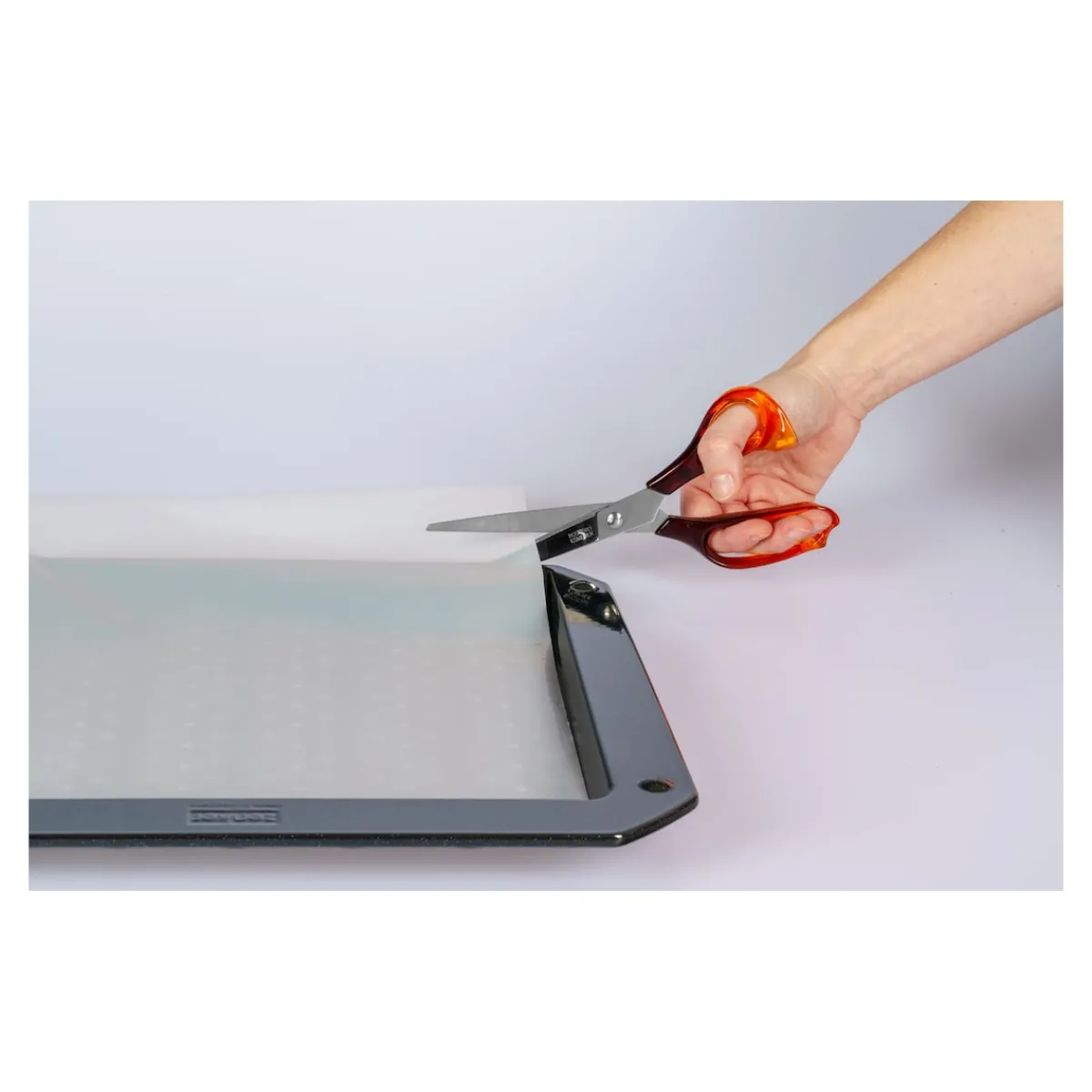 Weil das niemand gerne macht, gleich die Dauer-Backfolie mitbestellen. Die hält das Backblech dauerhaft sauber, lässt sich feucht abwischen und bis zu 1.000 Mal wiederverwenden.