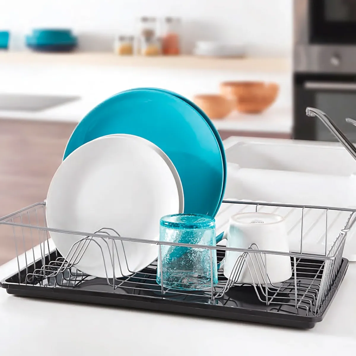 Chaos am Spültisch hat jetzt ein Ende! Der hochwertige Spülkorb gibt Tellern, Gläsern und Tassen beim Abtropfen ein stilvolles Zuhause und erspart Ihnen das Abtrocknen. Dank Polytherm Beschichtung ist er rostbeständig, stoßfest und antistatisch. Mit praktischer Abtropfschale.