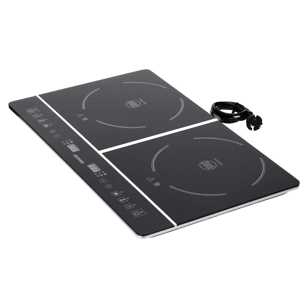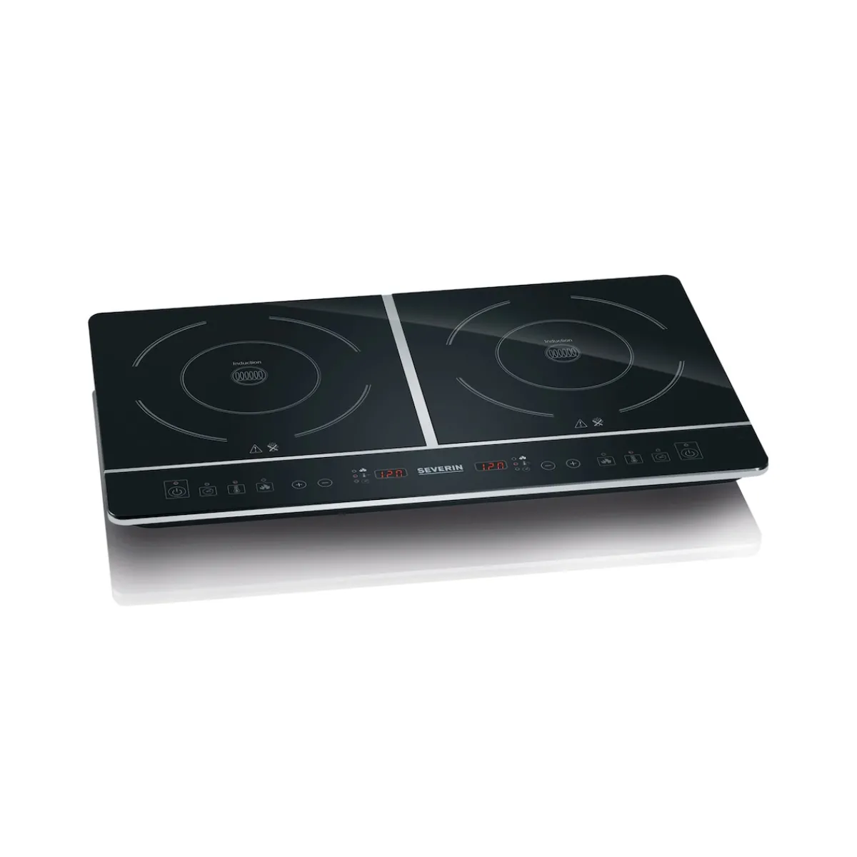 Erleben Sie Kochen auf höchstem Niveau mit unserem Doppel-Induktionskochfeld! Die beiden Glaskeramik-Kochfelder mit automatischer Topferkennung bieten optimale Flexibilität. Dank gleichmäßiger Wärmeverteilung und minimalem Energieverlust heizen sie schnell auf. Die Hitze entsteht direkt im Topfboden, nicht auf dem Kochfeld, wodurch Anbrennen vermieden wird. Der 180-Minuten-Timer mit Signalton und automatischer Abschaltung sorgt für präzise Zeitsteuerung. Das Touch-Bedienfeld mit beleuchtetem Display ermöglicht eine intuitive Bedienung. Entdecken Sie die Vorzüge der Induktionstechnologie und genießen Sie müheloses und effizientes Kochen mit unserem Doppel-Induktionskochfeld!