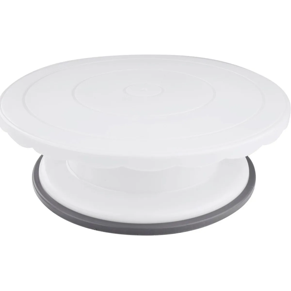 Die drehbare Tortenplatte von Dr. Oetker aus Kunststoff mit Antirutsch-Silikonboden lässt sich leicht drehen und bietet mit ihren Maßen von Ø 27,5 x 9 cm ideale Bedingungen zum Verzieren von Torten und Kuchen. Zudem ist sie spülmaschinengeeeignet.