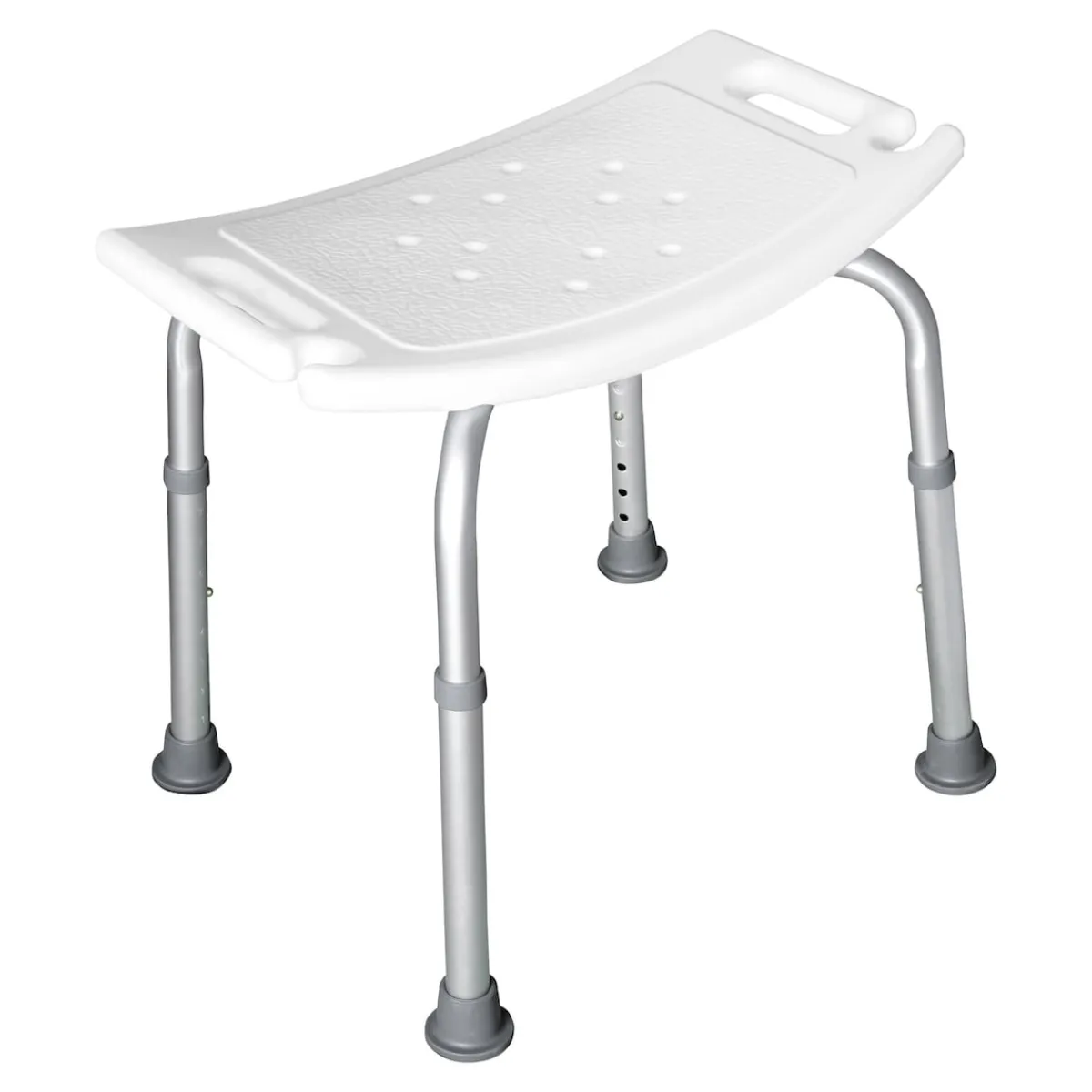 Sicher und komfortabel duschen: Duschhocker mit ergonomischer Sitzfläche, abgerundeten Kanten und rutschsicheren Gummifüßen. Sitzfläche aus pflegeleichtem Kunststoff, Beine aus pulverbeschichtetem Aluminium, schlag- und desinfektionsmittelfest.