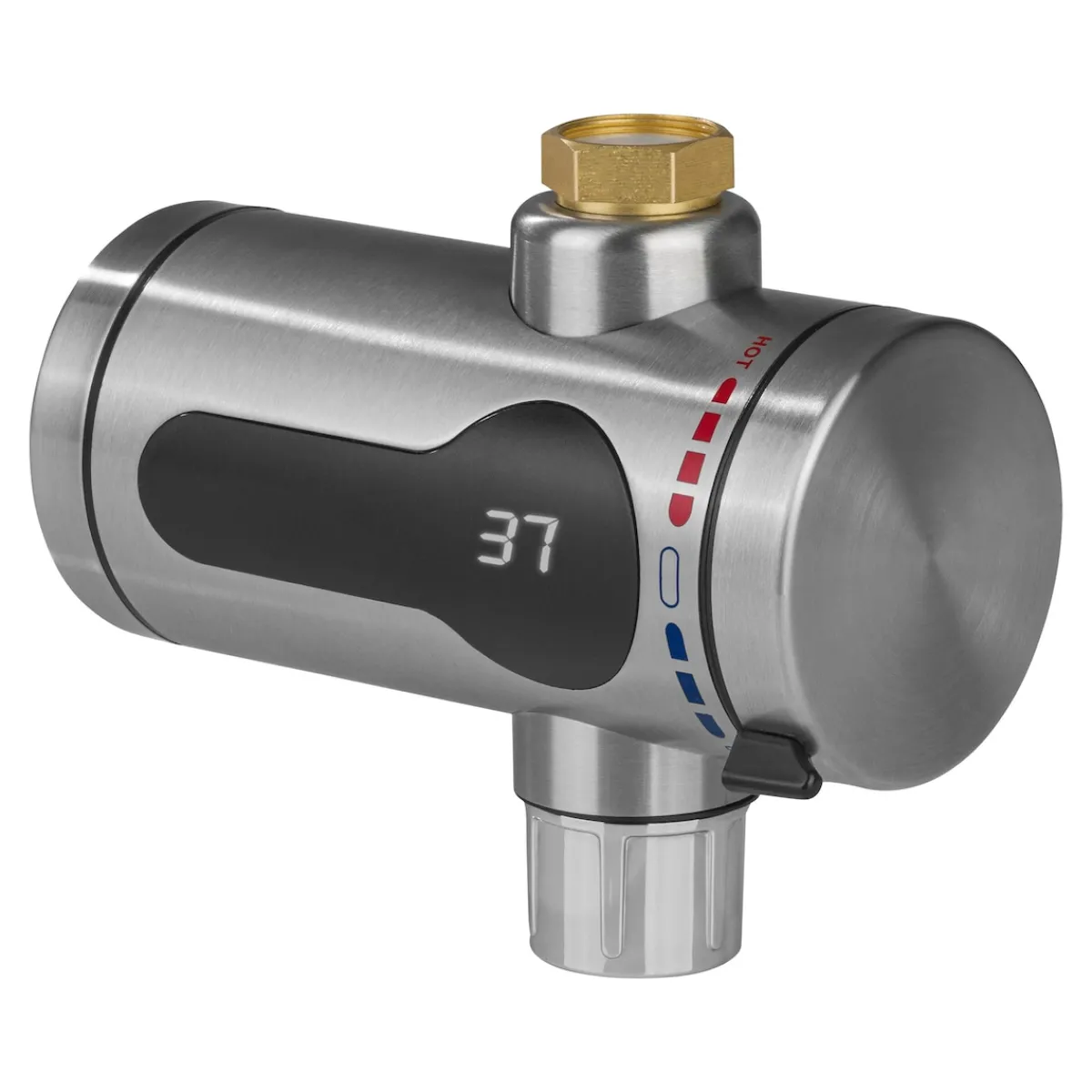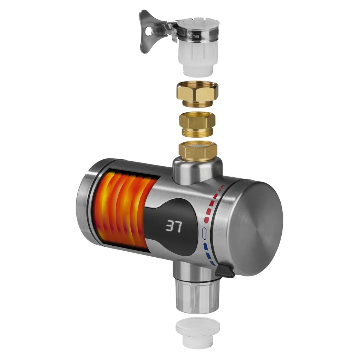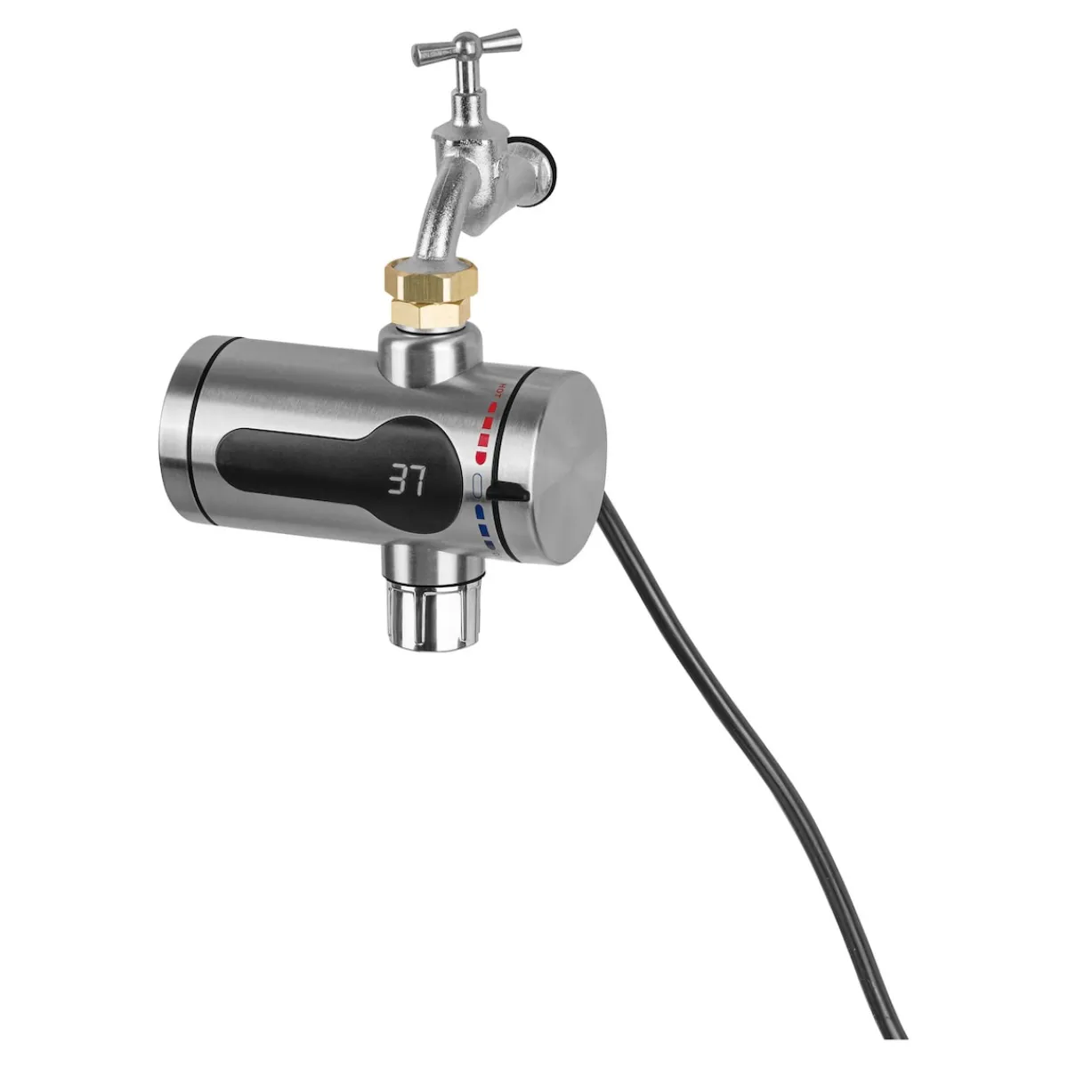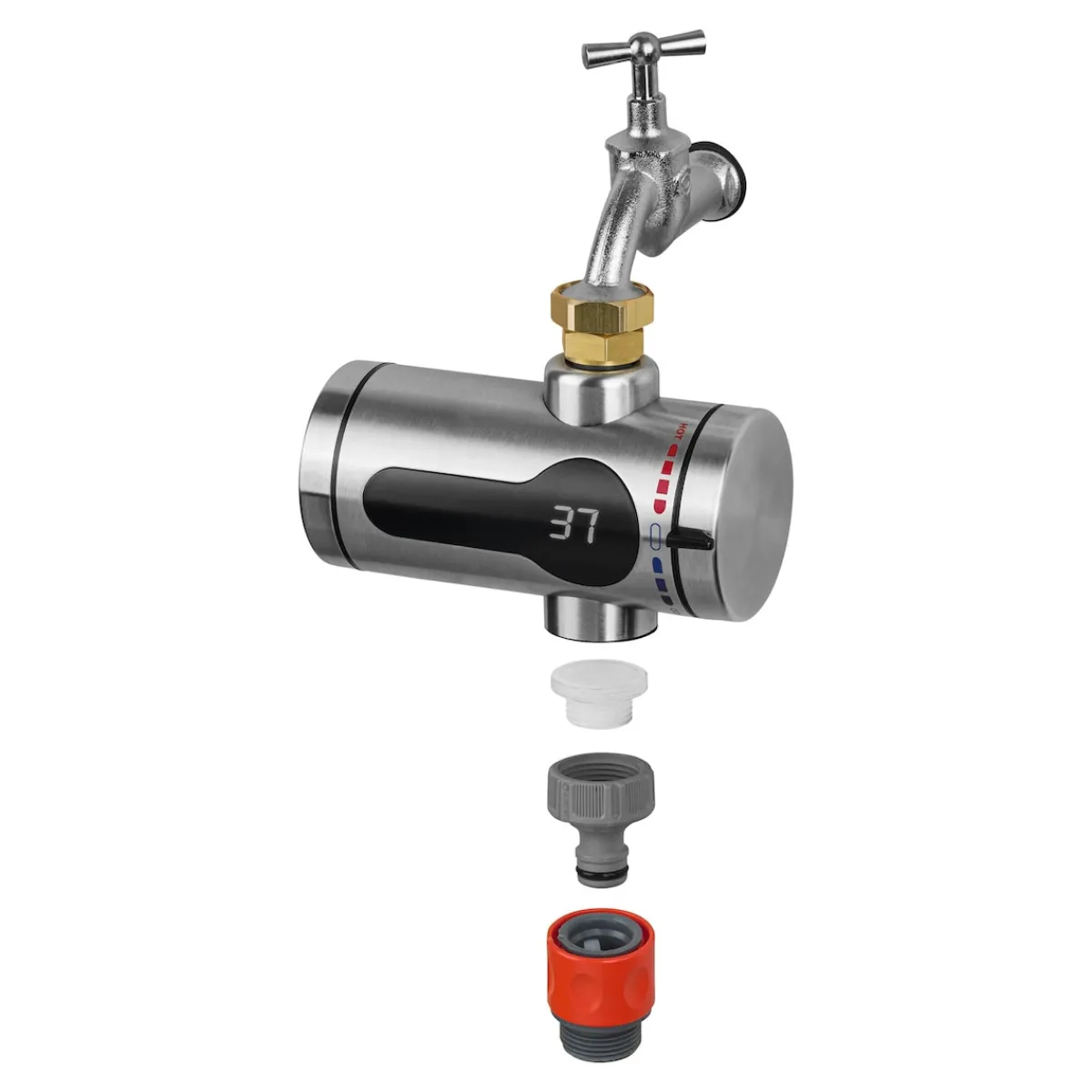Der „MAXXMEE“ Edelstahl-Durchlauferhitzer kann schnell, einfach und mühelos nahezu überall installiert werden, wo es einen Wasser- und Stromanschluss gibt. Anschrauben, Stecker rein, fertig! Dank der integrierten, leistungsstarken Heizspirale wird das Wasser sofort warm – ohne lange Verzögerung und ohne Wasserspeicher! Die genaue Temperatur kannst du zudem jederzeit an der digitalen LED-Anzeige ablesen. Endlich hast du überall dort heißes Wasser, wo du es schon lange gebraucht hast: in deinem Pool, im Garten, in deiner Werkstatt, auf der Terrasse, im Wohnwagen u.v.m. Komplett aus Edelstahl punktet der „MAXXMEE“ Edelstahl-Durchlauferhitzer nicht zuletzt mit hochwertiger Optik und robuster Langlebigkeit. Technische Daten: max. 3600 W, 220-240 V, 50/60 Hz. Wasserdruck: 0 ,04-0,4 mPa (1,4-6l/min).
