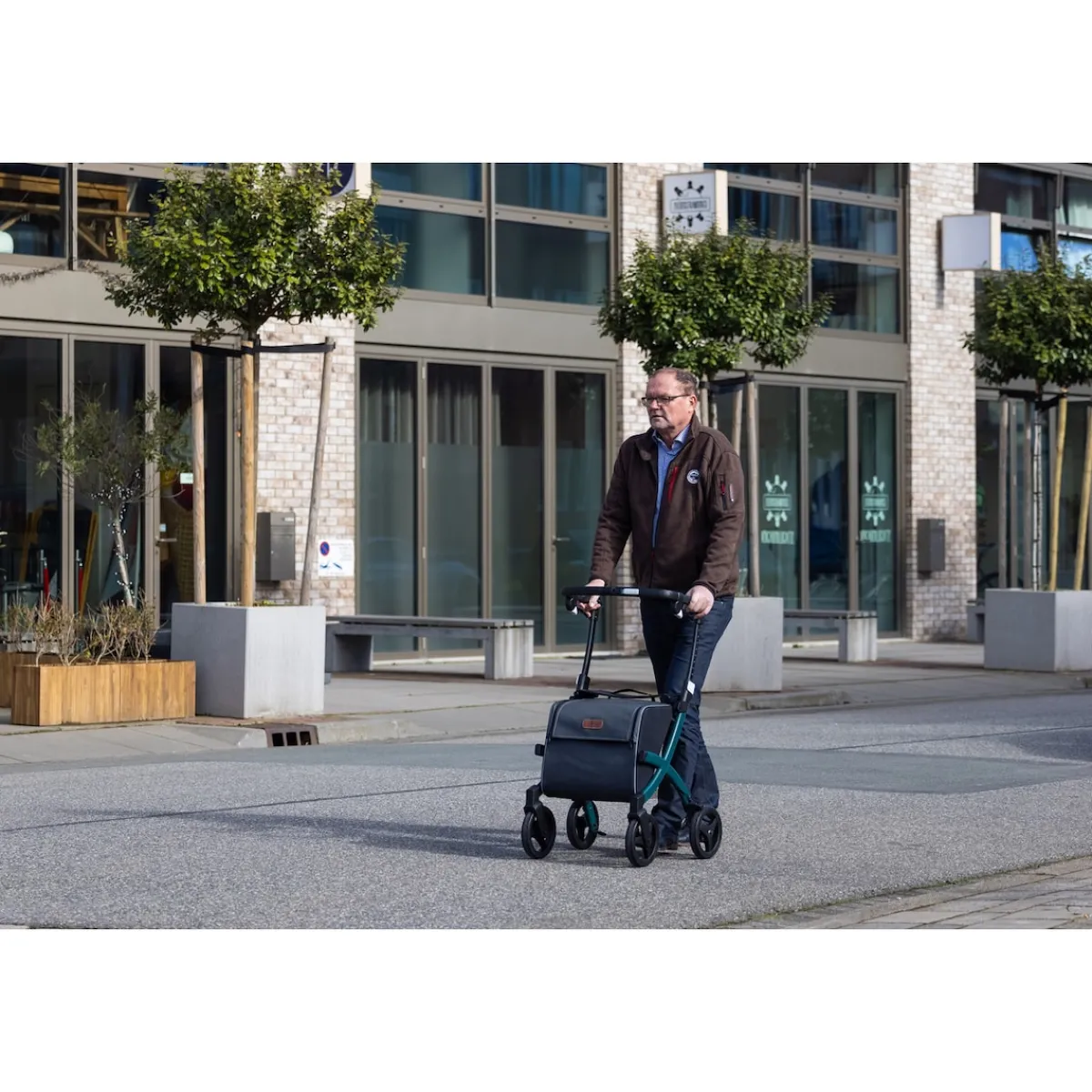 Das moderne, unauffällige Design erinnert eher an einen stylischen Shopper als an einen Rollator. Mit seinen klassischen Bremsgriffen können Sie sicher und präzise bremsen, unabhängig von den Wetterbedingungen. Die unsichtbaren Bremszüge im Rahmen sorgen für ein sauberes Erscheinungsbild.