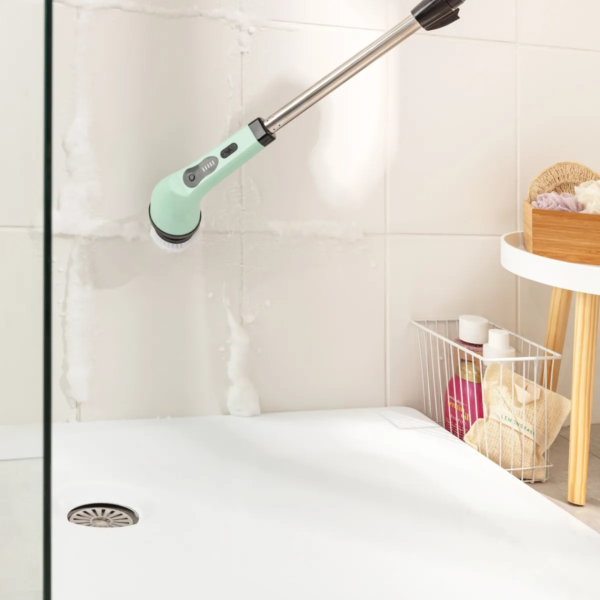 WOW – mit dieser elektrischen, leistungsstarken Reinigungsbürste putzen Sie wirklich wie von Zauberhand! Dank der 5 verschiedenen Aufsätze reinigt der Profi Fliesen, Fußböden, Teppiche, Fenster, Dusche, Herd, Auto u.v.m. blitzblank! Auch schwer erreichbare Stellen lassen sich dank des ausziehbaren Teleskopstiels mühelos reinigen. Mit USB-Ladekabel. Lieferumfang: 3 Bürstenaufsätze, 1 Reinigungspad, 1 Reinigungsschwamm, Teleskopstiel, USB-Ladekabel