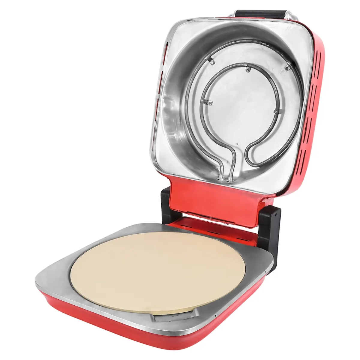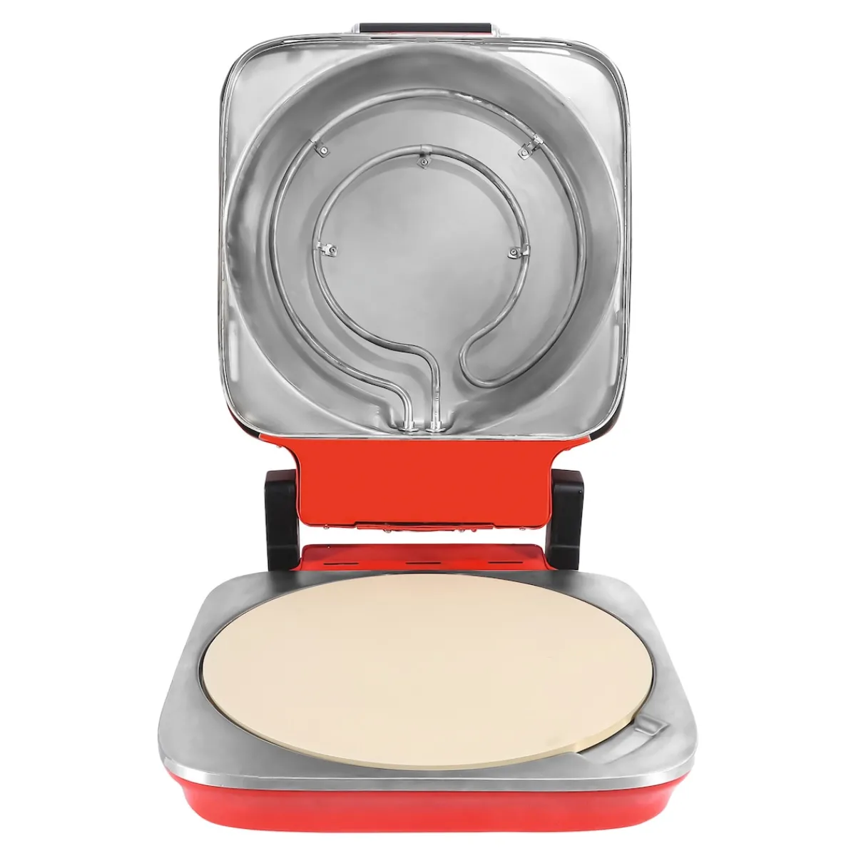 Lieferdienst war gestern! Mit diesem leistungsstarken Ofen machen Sie sich die perfekte Pizza in wenigen Minuten ganz einfach selbst! Auf dem Stein wird die Pizza super schnell und gleichmäßig bei sehr hoher Hitze gebacken – so schmeckt Ihre Pizza garantiert wie vom Lieblingsitaliener. Mit stufenloser Temperaturregelung und Cool-Touch-Griff. Herausnehmbarer Pizzastein: Spülmaschinengeeignet.
