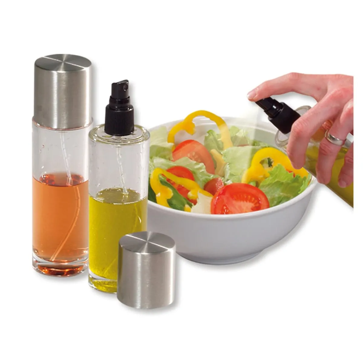 Verleihen Sie Ihren Gerichten den letzten Schliff – mit diesem praktischen Sprayer können Sie Essig, Öl, Säfte oder Soja-Saucen gleichmäßig über Salate, Fleisch oder Rohkost verteilen. Der hochwertige Edelstahlverschluss und das schlanke Design machen den Sprayer zu einem eleganten Küchenhelfer. Einfach in der Handhabung, sorgt er für eine präzise Dosierung und rundet den Geschmack Ihrer Mahlzeiten perfekt ab. Ein Muss für jede Küche!