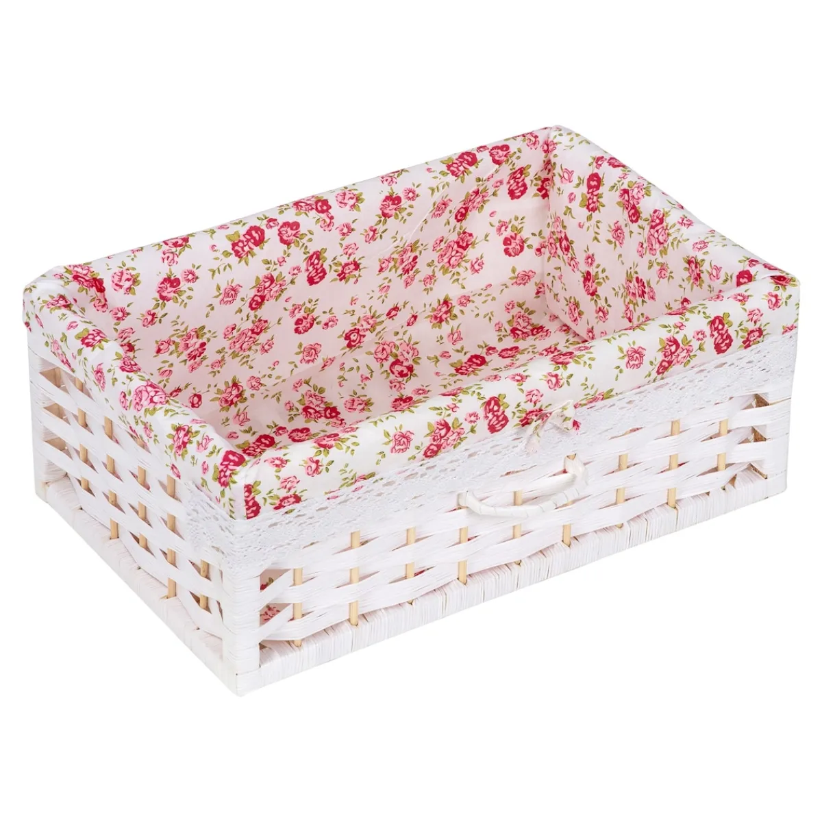 Ein Hauch von Nostalgie und Eleganz, der Ihr Herz höherschlagen lässt! Die Kommode verzaubert mit ihrer modernen Flecht-Optik und den geräumigen Fächern jeden Tag aufs Neue: Das romantische Rosenmotiv schafft eine warme Atmosphäre. Gleichzeitig sorgen zarte Rüschenbänder und hübsche Schleifchen für einen bezaubernden Blickfang.