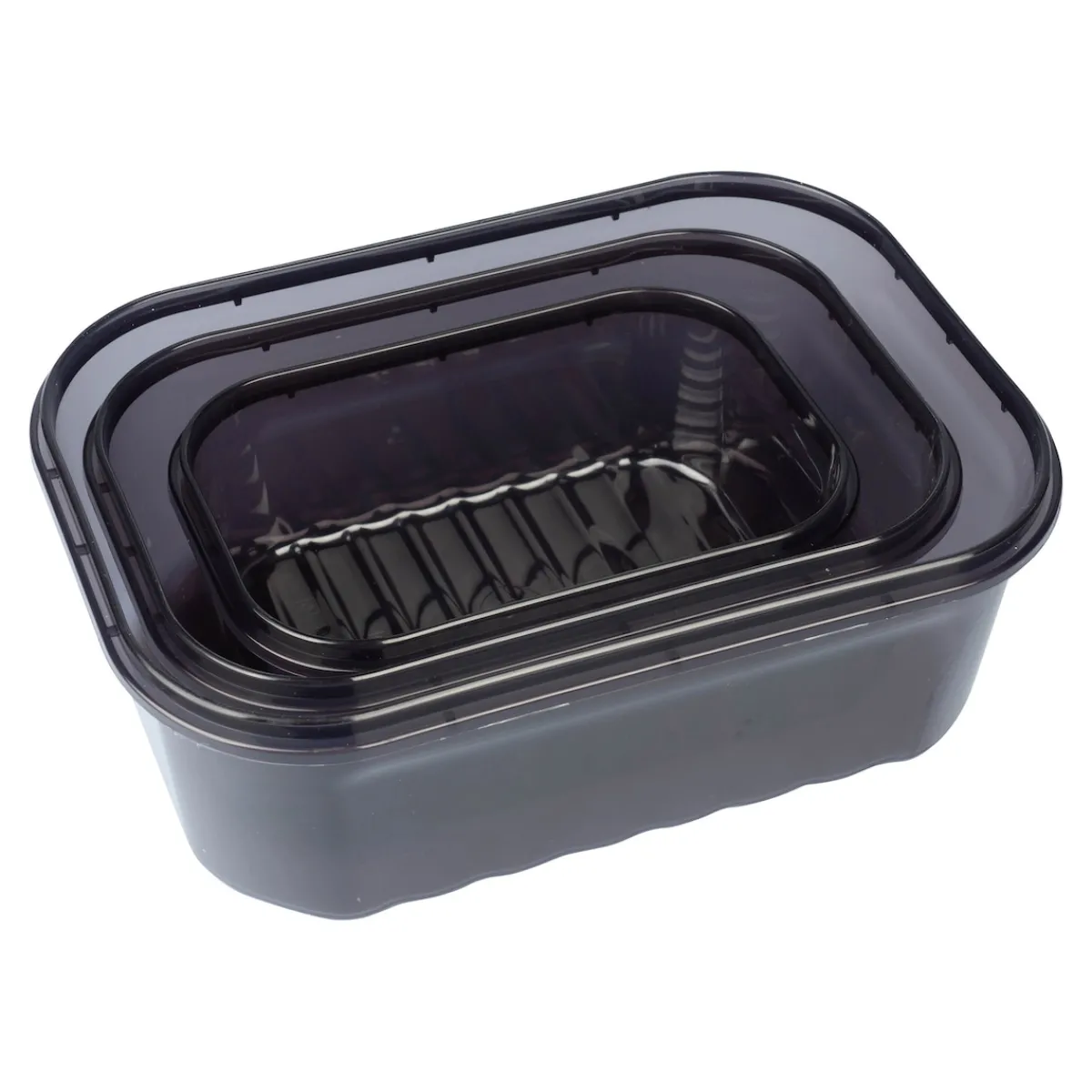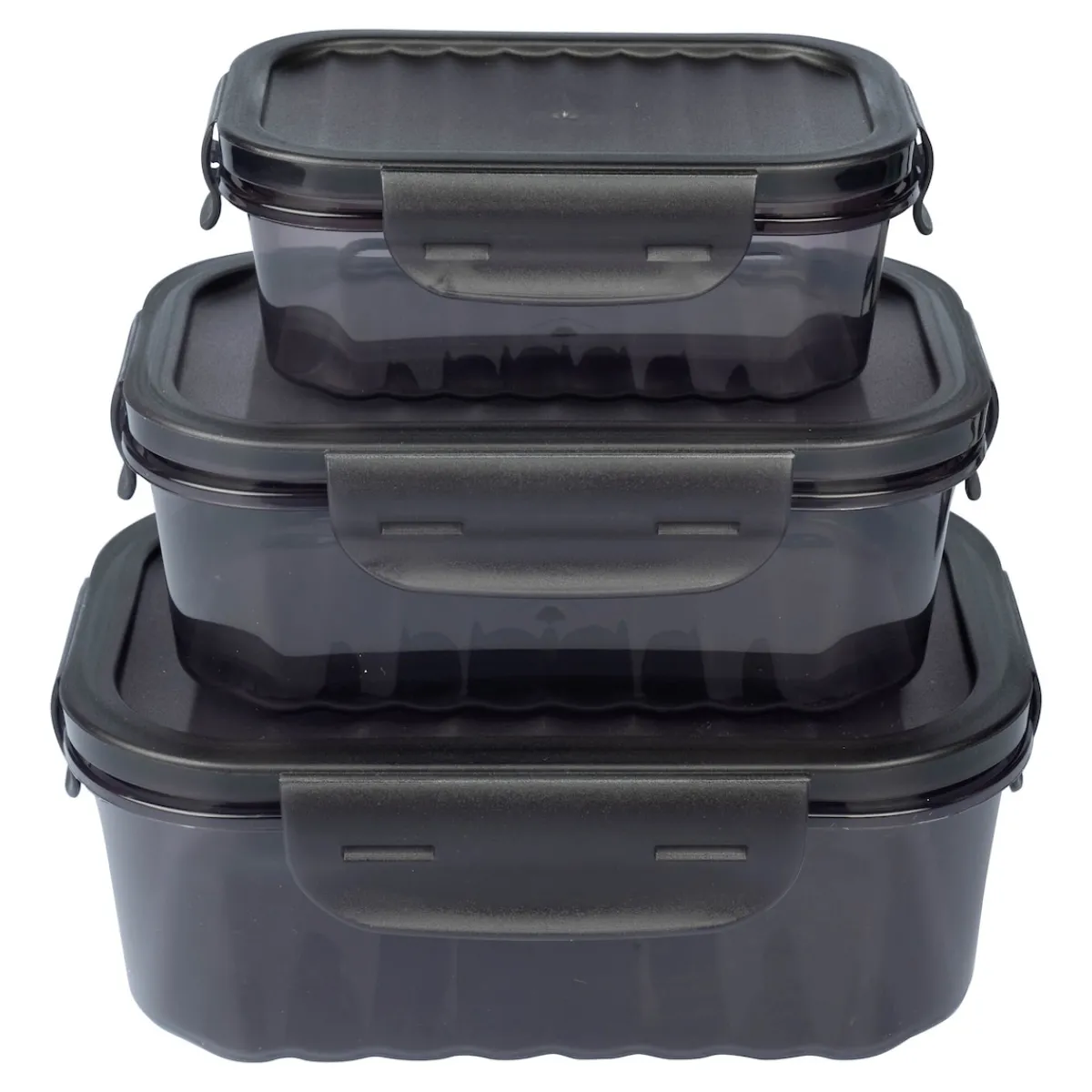 In diesem stilvollen Klickdosen-Set behalten Sie stets den Überblick über Ihre Lebensmittel. Der 4-fach-Klickverschluss sorgt für eine sichere Aufbewahrung und langanhaltende Frische. Platzsparend ineinander verstaubar.