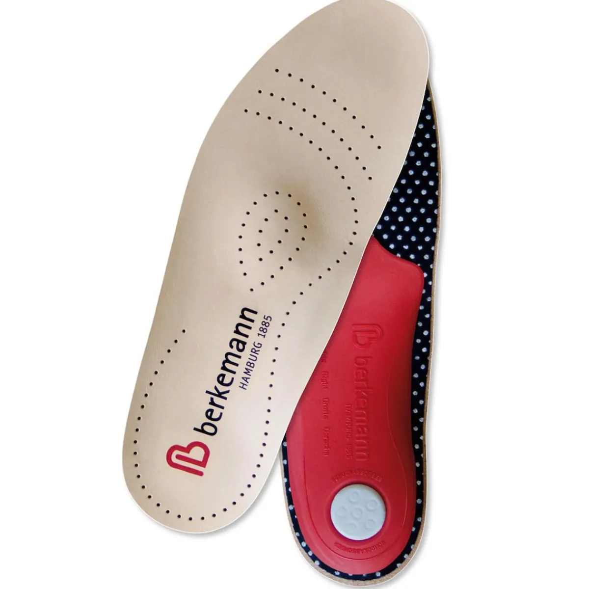 Hilft bei Spreiz-, Senk- und Plattfüßen. Die Berkodur-Fußbrücke unterstützt die Fußmuskulatur sowie das Längs- und Quergewölbe. Ein Schockabsorber dämpft im Fersenbereich. Aus hochwertigem Leder, mit Aktivkohleschicht. Die Silberionen-Veredelung wirkt antibakteriell. Bezug aus hochwertigen Leder.