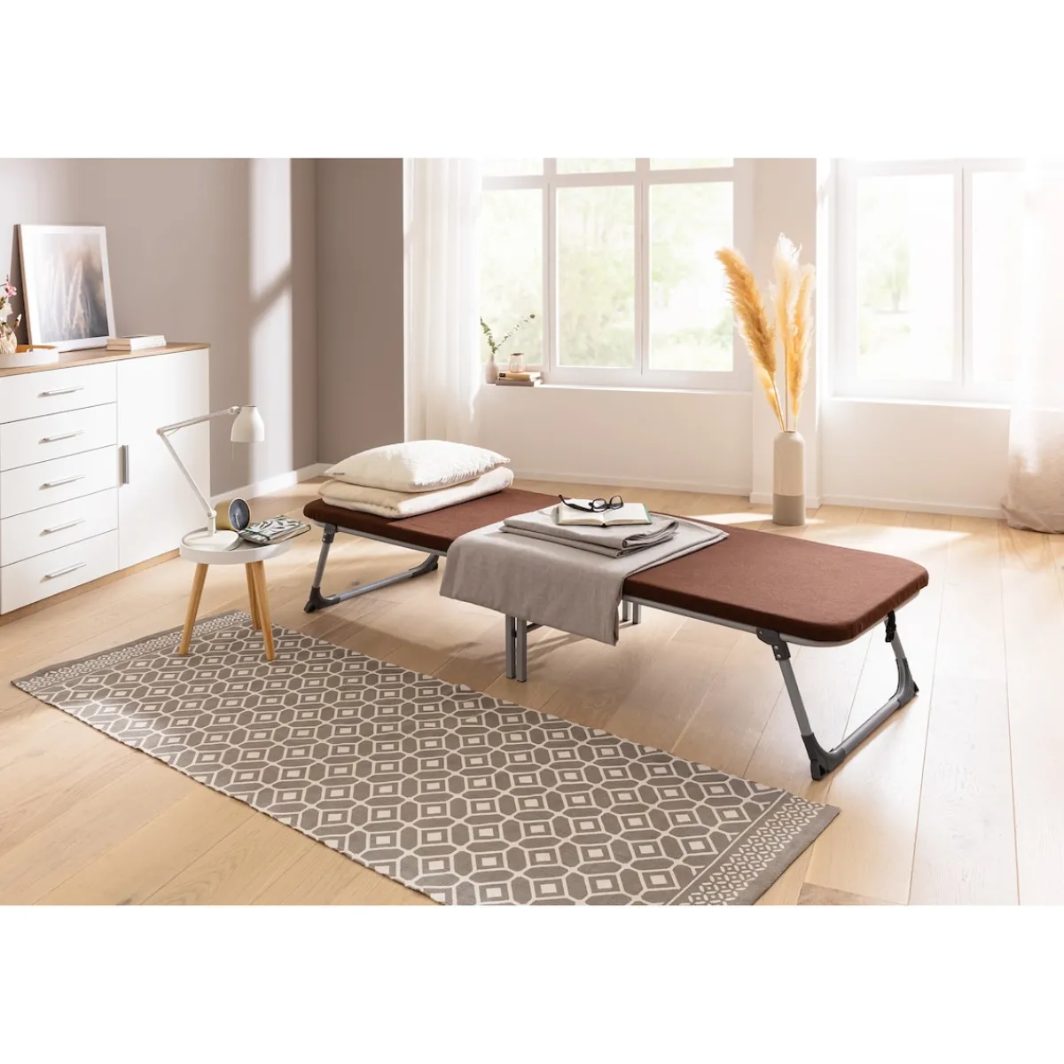 Wenn’s mal später wird oder sich Besuch ankündigt: Mit diesem praktischen Gästebett schaffen Sie im Nu eine komfortable Schlafgelegenheit. Einfach ausklappen, auf die stabilen Füße stellen und schon schläft Ihr Gast bequem und sicher. Ebenso fix ist es zusammengeklappt und platzsparend verstaut.