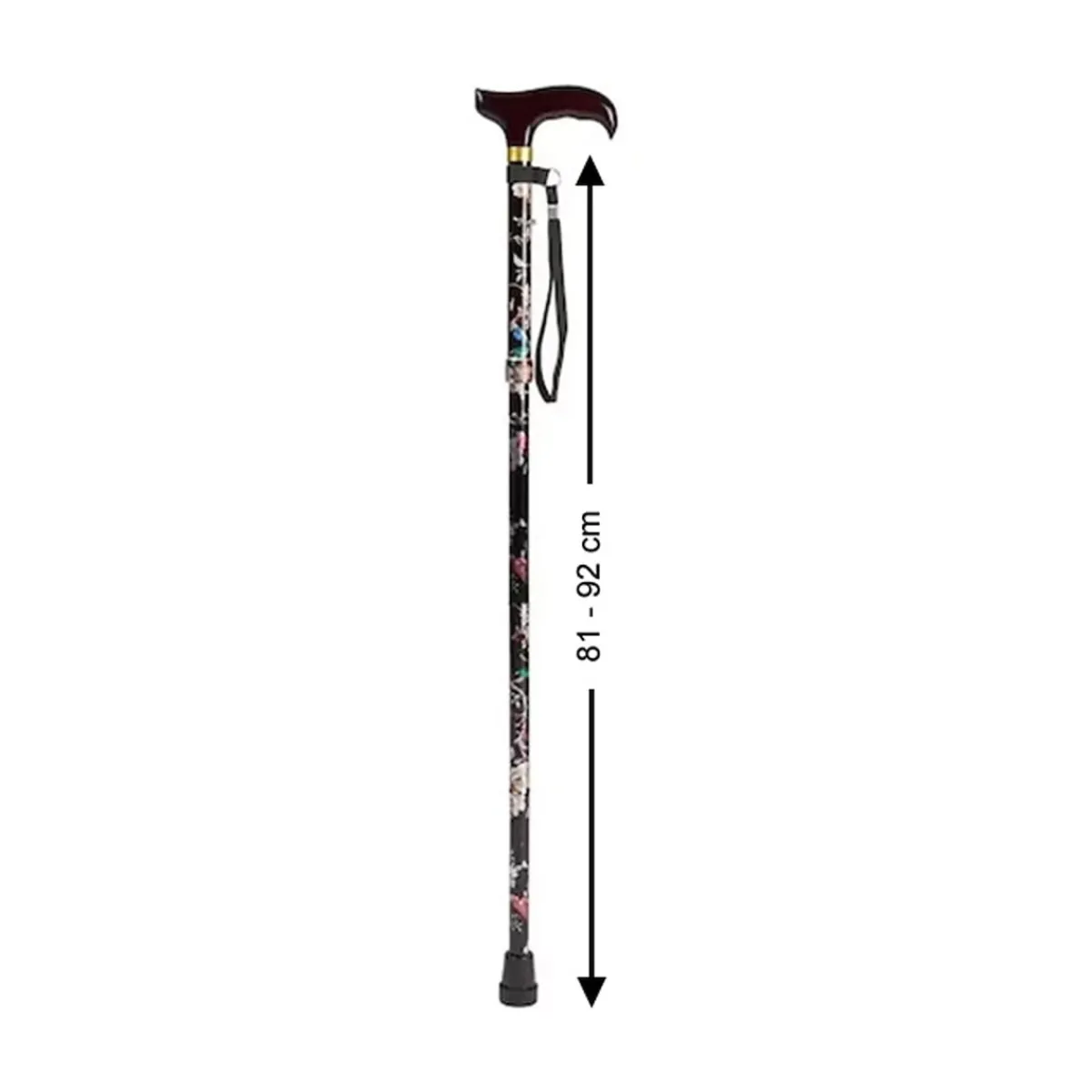 Passt zusammengeklappt in jede Tasche – ist blitzschnell wieder entfaltet. Bietet Sicherheit für leicht gehbehinderte und ältere Menschen. Rutschfeste Stockkapsel. Höhenverstellbar 81 – 92 cm.