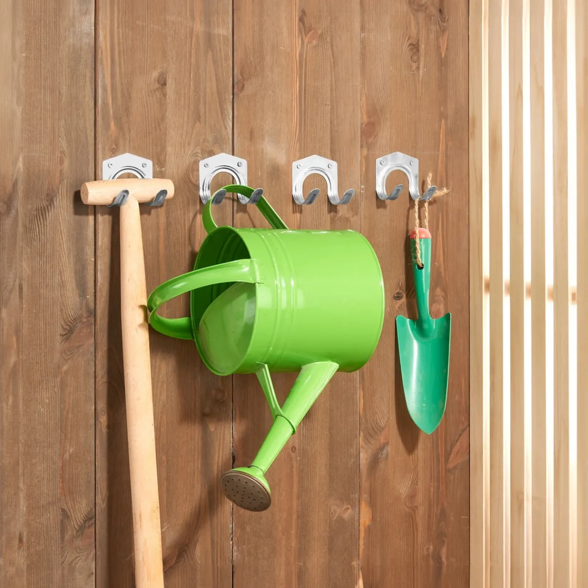 Bringen Sie mit diesen robusten Gerätehaltern Ordnung in Keller, Garage oder Schuppen und behalten Sie den Überblick! Durch die 2 Haken pro Halter bleibt jedes Gartengerät sicher und griffbereit an Ort und Stelle. Inkl. Montagematerial.