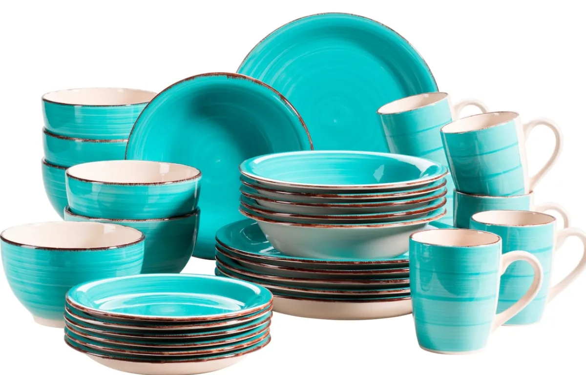 Dieses moderne, rustikal anmutende Geschirrset besteht aus